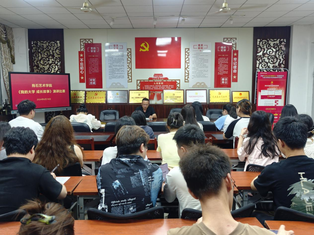 抱石艺术学院于6月16日在艺术楼202会议室举办了一场大学生成长故事演讲比赛。本次比赛旨在展示学院学生的个人成长历程,弘扬积极向上的校园文化,增强学生间的交流与互动。