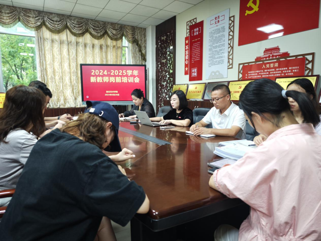 随着教育事业的不断发展,新教师的加入为学院注入了新的活力。然而,新教师在教育教学经验、专业知识、教学方法等方面可能存在不足。抱石艺术学院于8月28日下午16:30,在艺术楼202会议室召开2024-2025学年新教师岗前培训。此次会议由院长余旭主持,党总支书记张志胜、副院长张培、党总支副书记姬赛赛以及新入职教师参会。