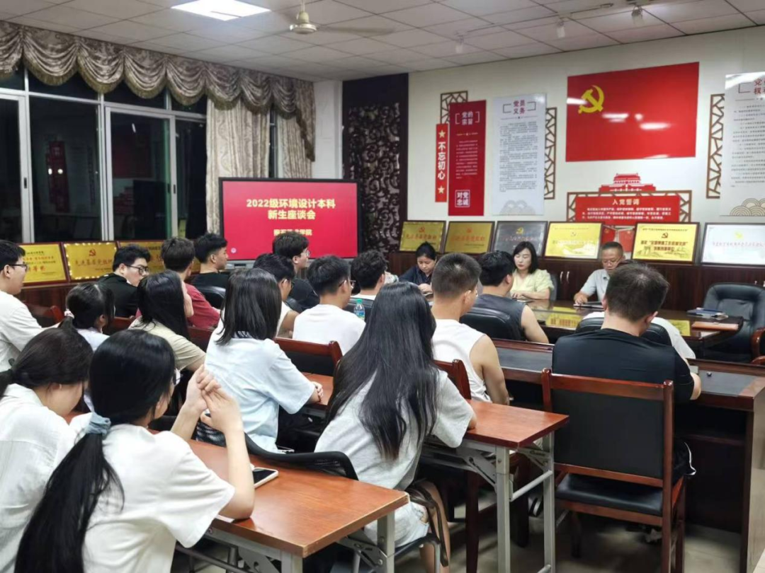 2024年9月9日19:00,在艺术楼202会议室召开2022级环境设计专业专升本新生座谈会。院长余旭、副院长张培、党总支书记张志胜以及环境设计教研室主任廖娟出席本次座谈会。