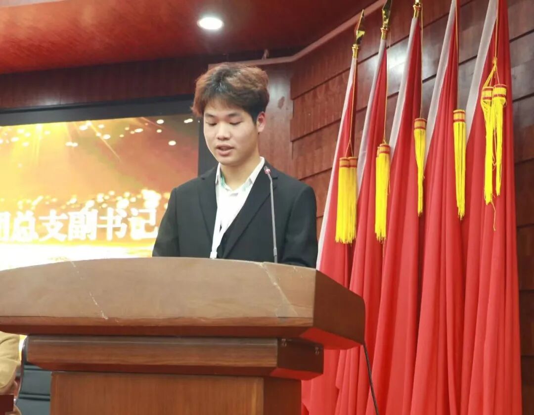 新一届团总支学生会主席汪利辉和团总支副书记黄文涛上台发表就职发言。他们在发言中表达了对学院信任的感谢,并提出了未来工作的方向和目标,展现出积极进取、勇于担当的精神风貌,为未来的工作开展定下了积极的基调。