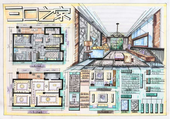 1.作品名称:三口之家——室内设计