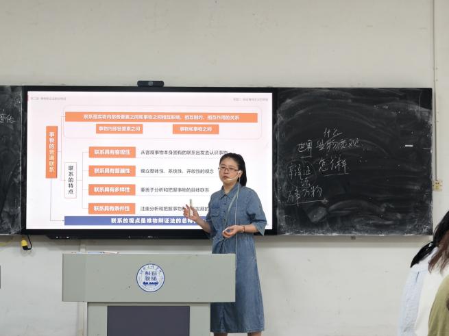 在《马克思主义基本原理》课堂上,刘德华副校长全程聆听了黄琴老师的授课。黄琴以“事物的普遍联系与变化发展”为主题,通过系列丰富案例,生动阐释了联系的客观性、普遍性、多样性和条件性等哲学原理。课后交流中,刘德华对黄琴老师理论联系实际的教学方法表示赞赏,特别肯定了其运用案例教学提升课堂吸引力的做法。同时建议,在保持现有教学特色的基础上,可进一步结合艺术专业特点,优化教学节奏设计,实现思政课程与专业教育的有机融合。