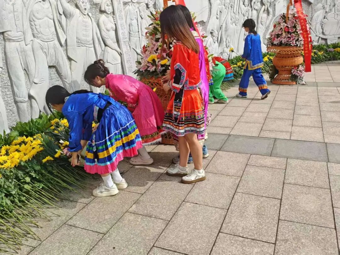 随后,抱石艺术学院少数民族学生代表与其他师生一道,怀着崇敬之心依次向纪念碑敬献鲜花。来自畲族的学生蓝欣叶动情说道:“在仰天岗上,每一寸红色土地都承载着中华民族的共同记忆,先烈们用生命换来了今天的和平生活。”藏族学生宋梅表示:“作为艺术专业学子,我要把英烈故事融入创作,让红色精神通过画笔代代相传。”