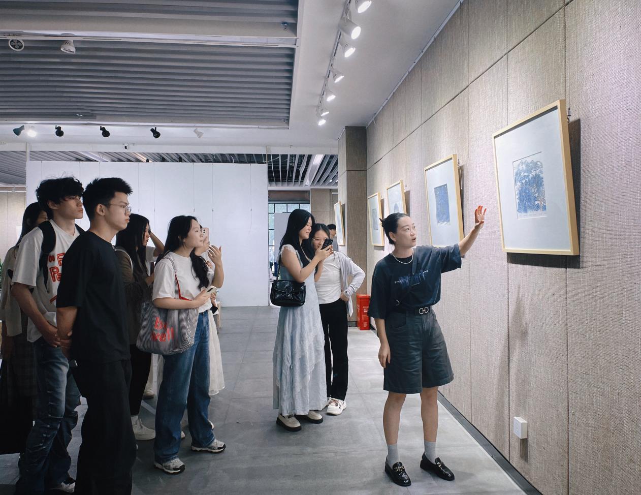 抱石艺术学院公共艺术教研室作为本次活动的组织者与导览者,公共艺术教研室主任曹建红为观众提供了专业而生动的讲解服务。学生们结合艺术史知识与个人感悟,深入解读版画创作背后的历史背景、技法特点与情感表达,使静态的展品“活”了起来。一位参与活动的学生表示:“通过导览,我不仅加深了对版画艺术的理解,更感受到艺术与社会、国家命运之间的深刻联结。”