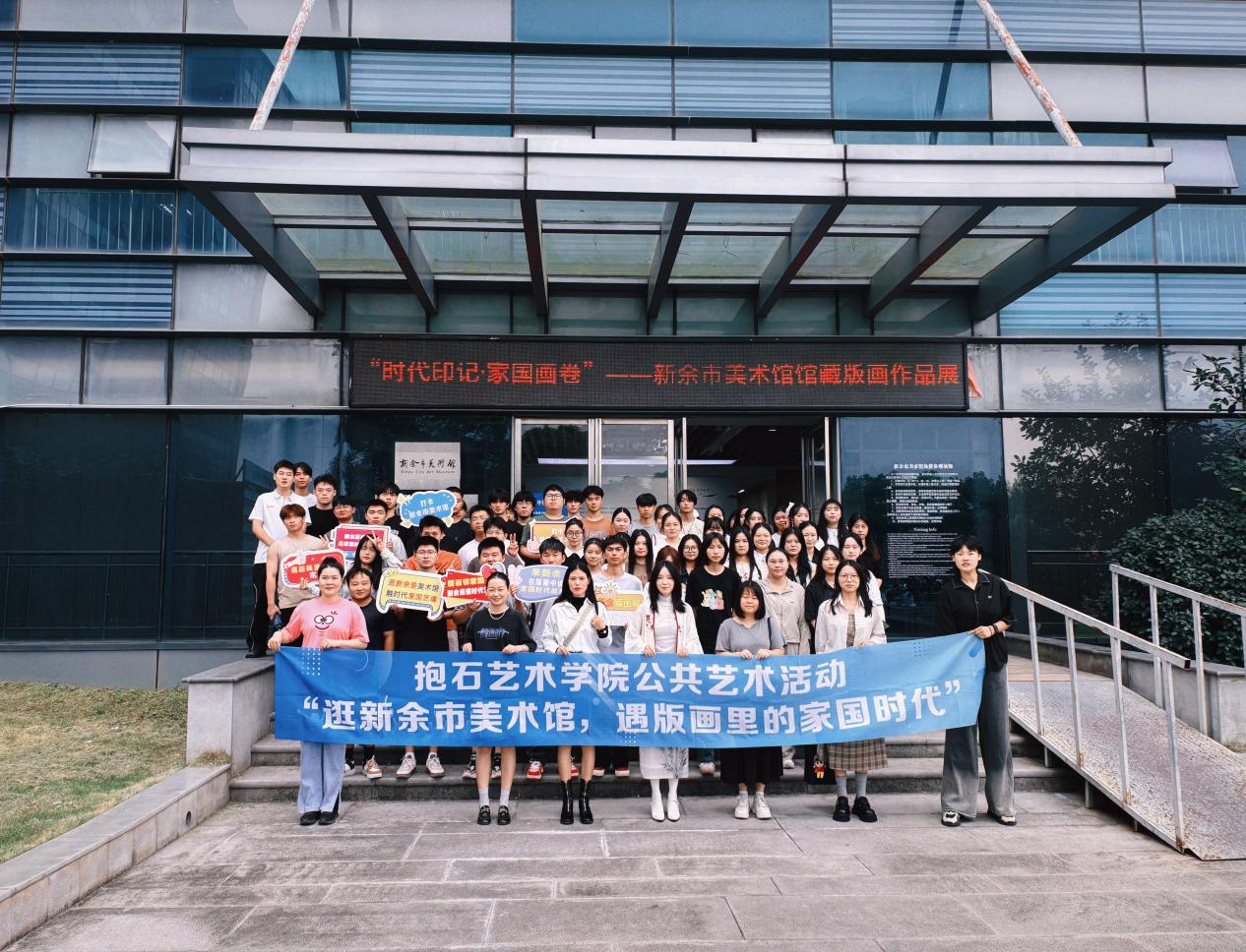 2025年10月18日,为深化美育教育、弘扬本土文化,提升公众对公共艺术的认知与参与度,抱石艺术学院公共艺术教研室于近日在新余市美术馆成功举办主题为“逛新余市美术馆,遇版画里的家国时代”的公共艺术活动。本次活动吸引了众多师生共同参与,通过沉浸式观展与互动体验,带领观众在黑白线条与刀锋印记中,重温家国记忆,感悟时代变迁。