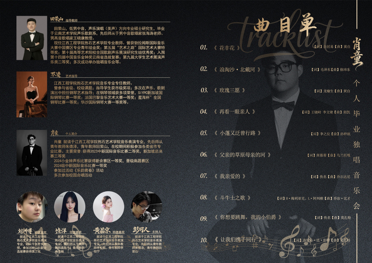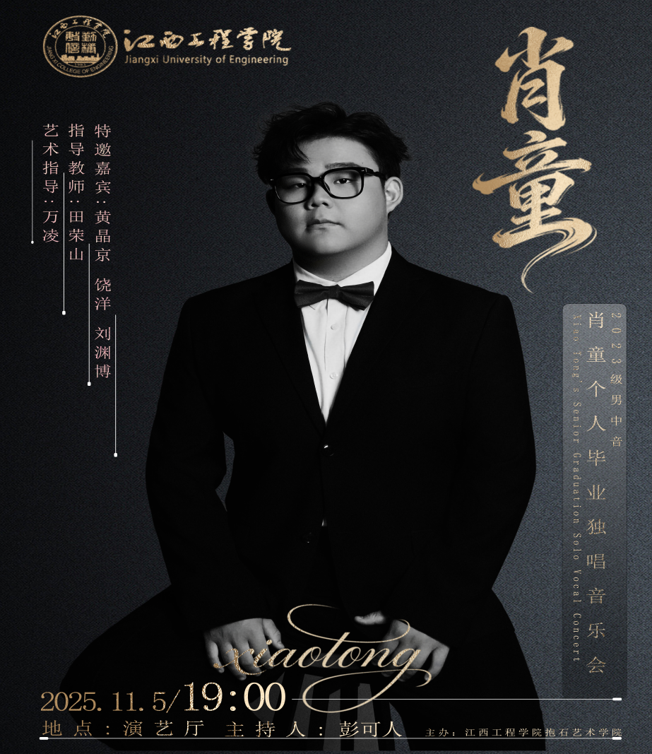 时光如水,岁月如歌。在音乐的陪伴下,我们走过四季,迎来毕业季最动人的仪式——用歌声告别母校,用旋律铭记青春。肖童毕业独唱音乐会邀您见证。