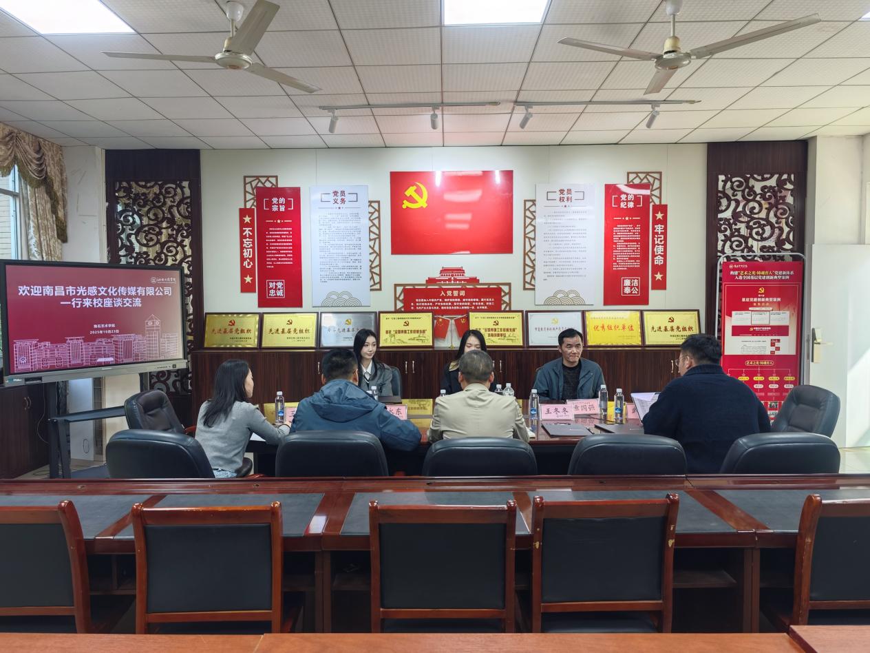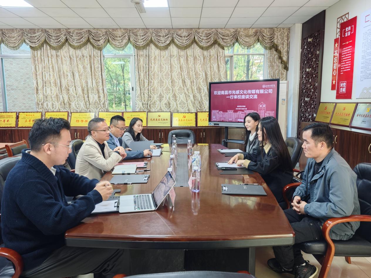 为深化校企合作内涵,精准对接艺术产业人才需求,探索产教融合育人新模式,2025年10月23日,南昌光感文化有限公司一行莅临抱石艺术学院开展交流座谈。抱石艺术学院院长张志胜、党总支书记刘永东、副院长王冬冬以及教研室主任参加座谈,双方围绕人才培养、实践教学、项目合作等核心议题展开深入探讨。