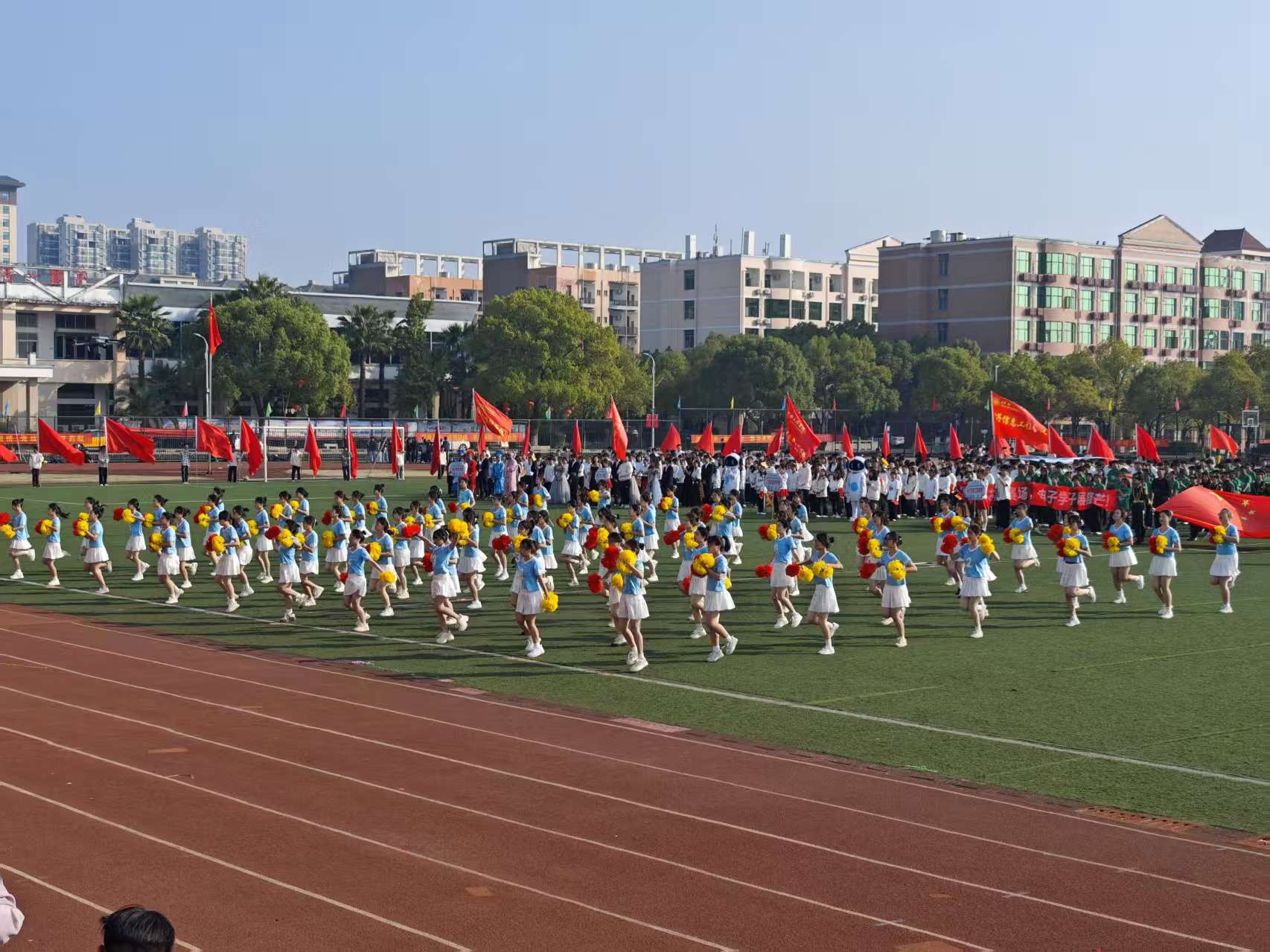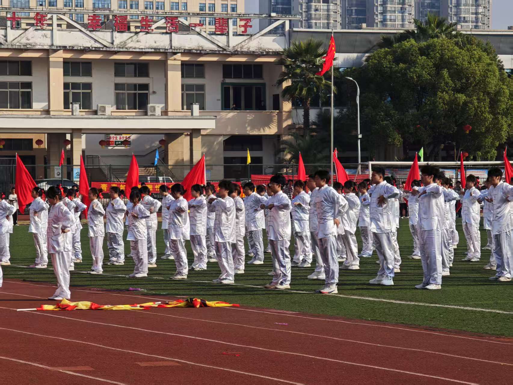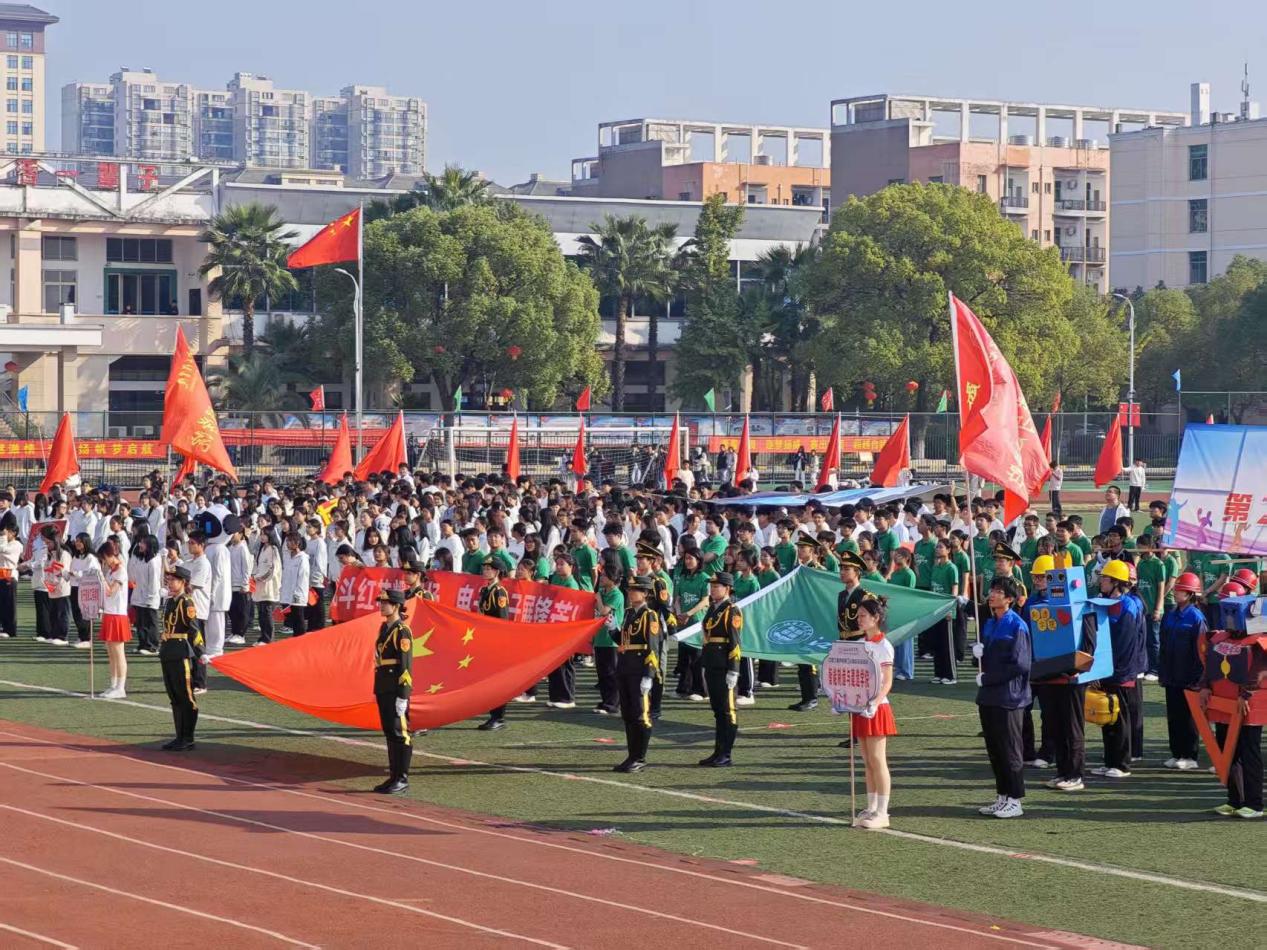 开幕式在庄严的国歌声中拉开帷幕,全体人员肃立齐唱国歌,鲜艳的五星红旗在朝阳中冉冉升起。校长在开幕致辞中强调,运动会是传承体育精神、展现学子风采的重要平台,既是速度与力量的竞技,更是团结与协作的彰显,希望全体师生以赛事为契机,将运动激情融入日常,让健康成为生活底色。随后,运动员代表与裁判员代表分别宣誓,承诺恪守体育道德、秉持公正准则,确保赛事顺利进行。
