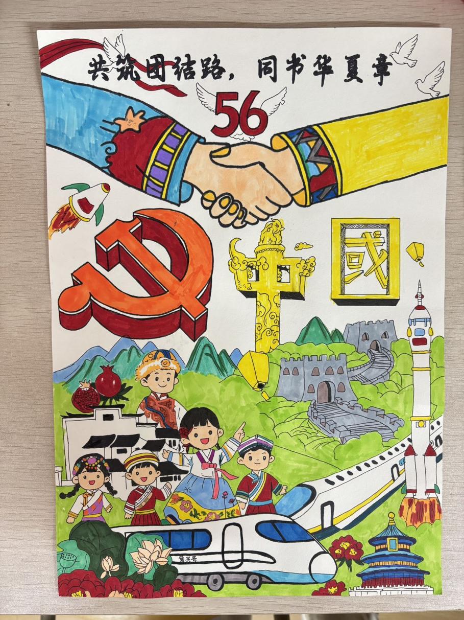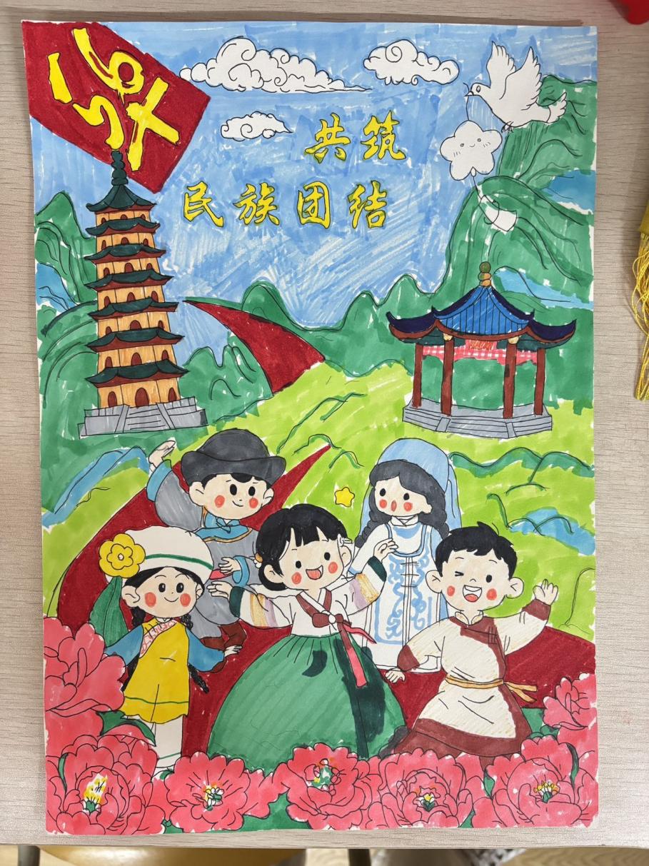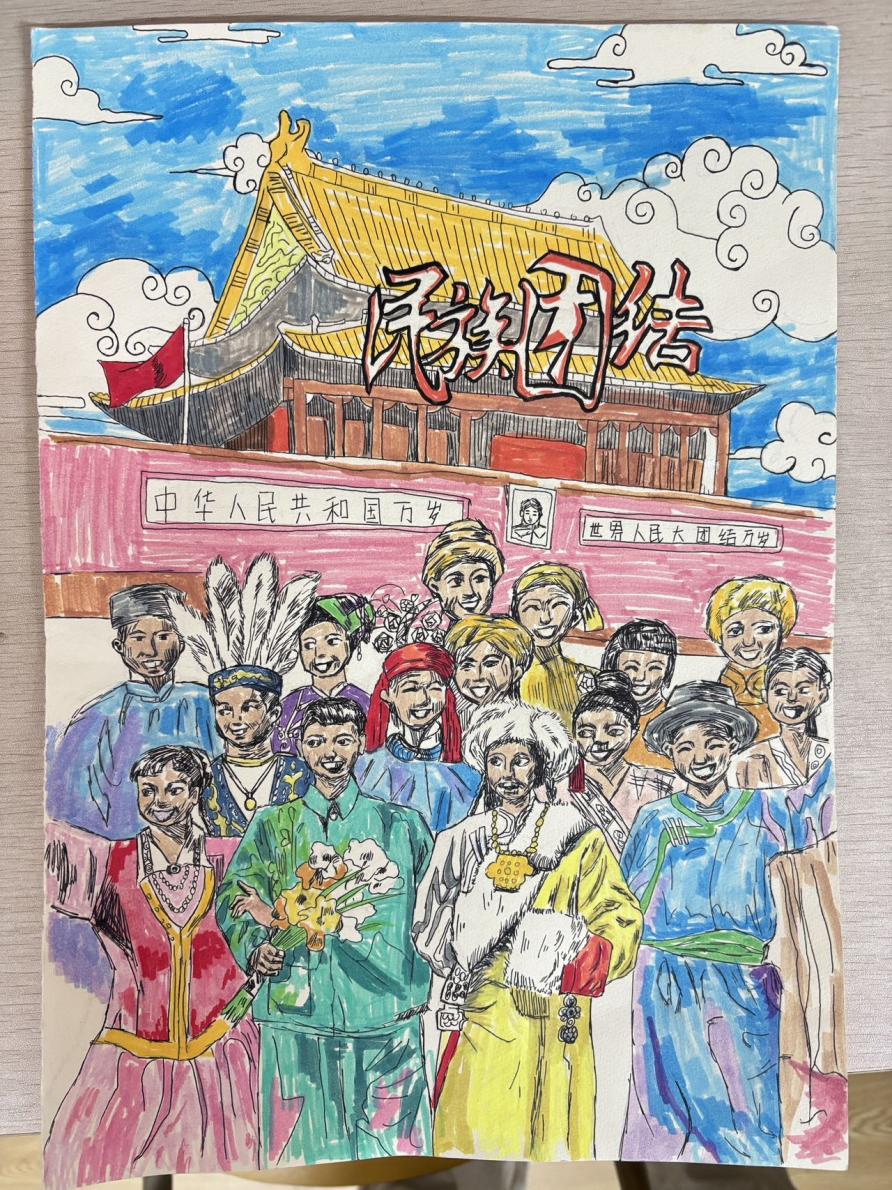 全院学子积极响应、踊跃投身创作。同学们历经“查阅资料-提炼主题-精心绘制”的过程,将56个民族的服饰之美、歌舞之韵、团结之举融入方寸画纸。作品兼具思想性与艺术性,或以细腻笔触勾勒民族风情,或以生动场景再现共荣瞬间,深刻传递了“各民族像石榴籽一样紧紧抱在一起”的信念,展现了新时代青年对民族文化的热爱与对民族团结的坚定践行。