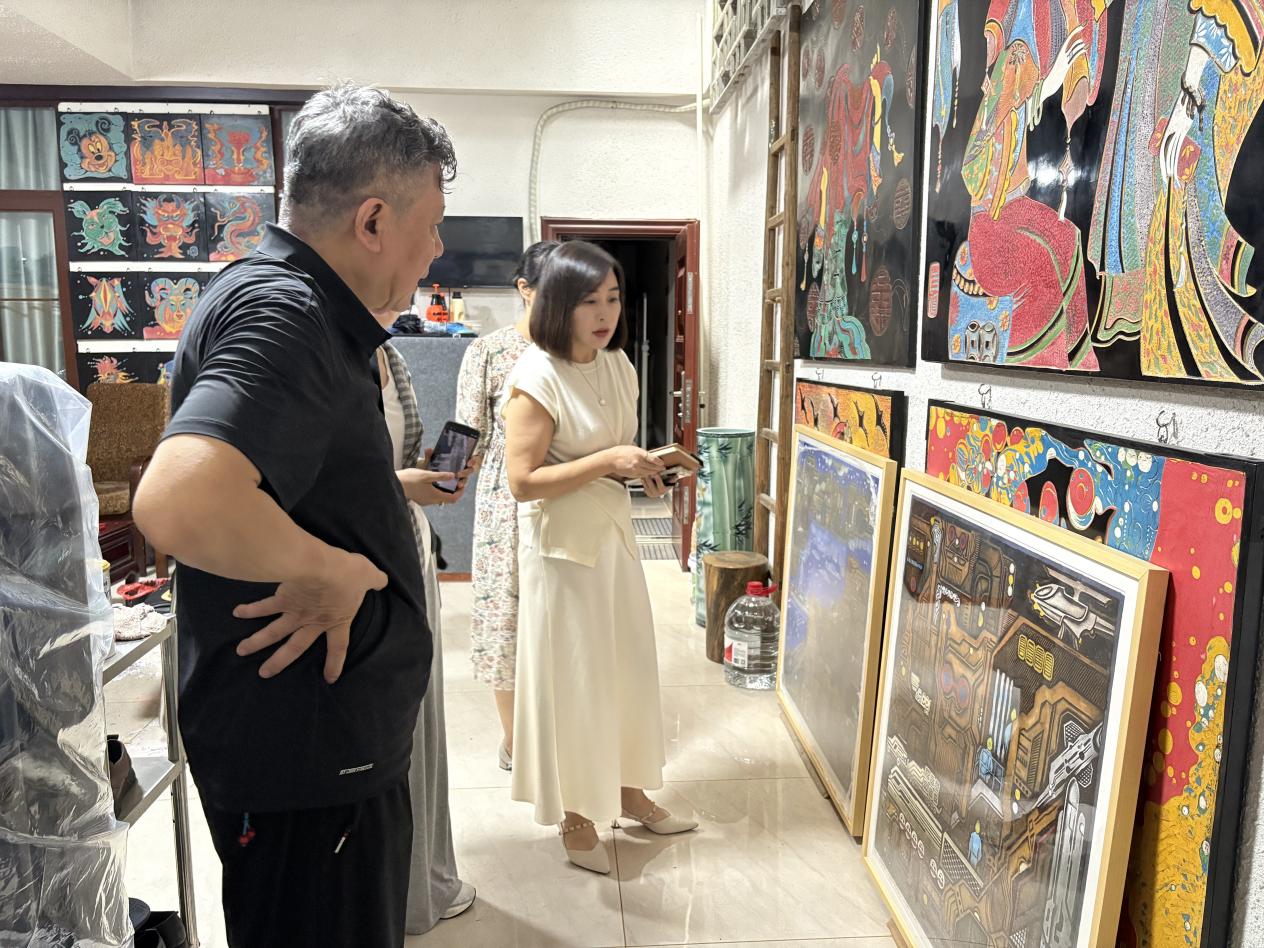 调研过程中,多彩漆刻艺术家史卫带领大家一起观摩学习创作作品及制作工艺,对工艺的重难点及发展现状存在的问题与展望做了详实地阐述,他希望通过高校、美协、省艺术基金项目等平台传播与推广,加大创作人才队伍,共促地方文化艺术发展。
