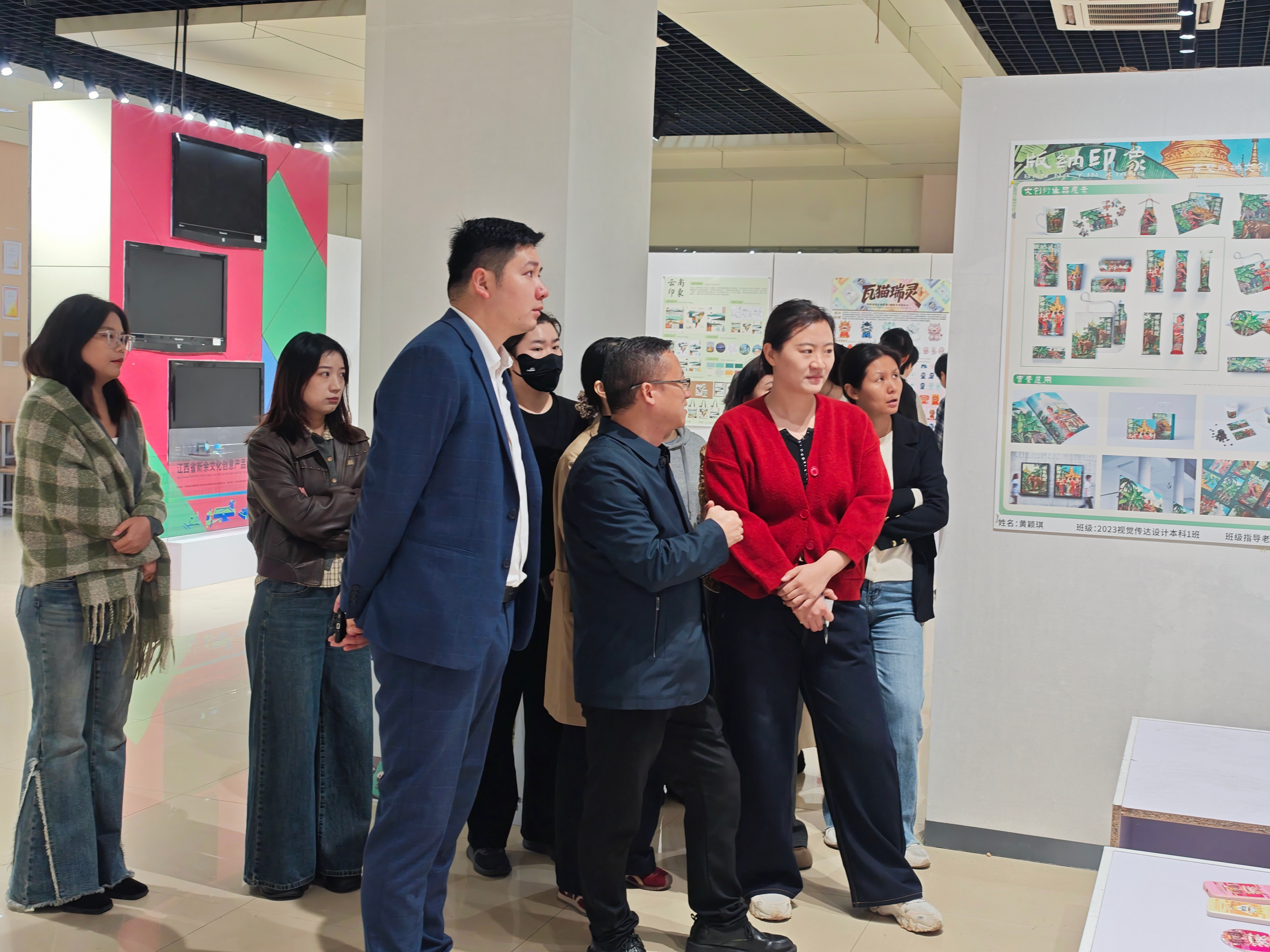 当云南的民族图景遇见新余的生态叙事,当视觉秩序碰撞共生理念,一场融合田野洞察与设计表达的视觉盛宴如期绽放。2025年11月5日上午10时,抱石艺术学院2023级视觉传达设计专业《专业考察》课程成果展在艺术实践中心正式拉开帷幕。本次展览以“序间共生”为核心主题,集中呈现了学子们深入云南、新余两地考察后的创意成果,展现了视觉传达设计在文化转译、品牌塑造与信息传播中的多元价值。抱石艺术学院院长张志胜、副院长王冬冬、视觉传达设计专业教研室全体教师及各年级学生代表共同出席了开幕式。