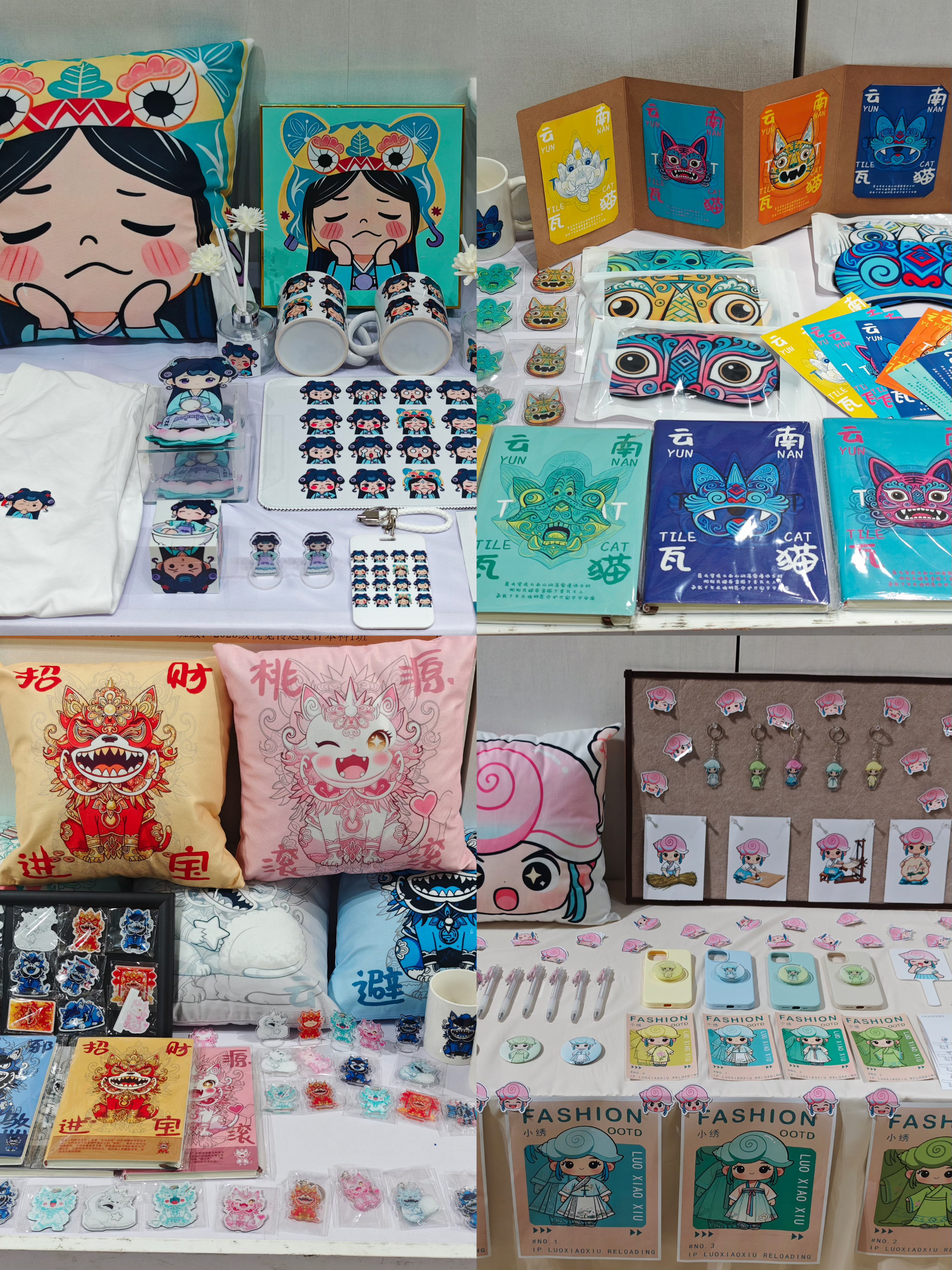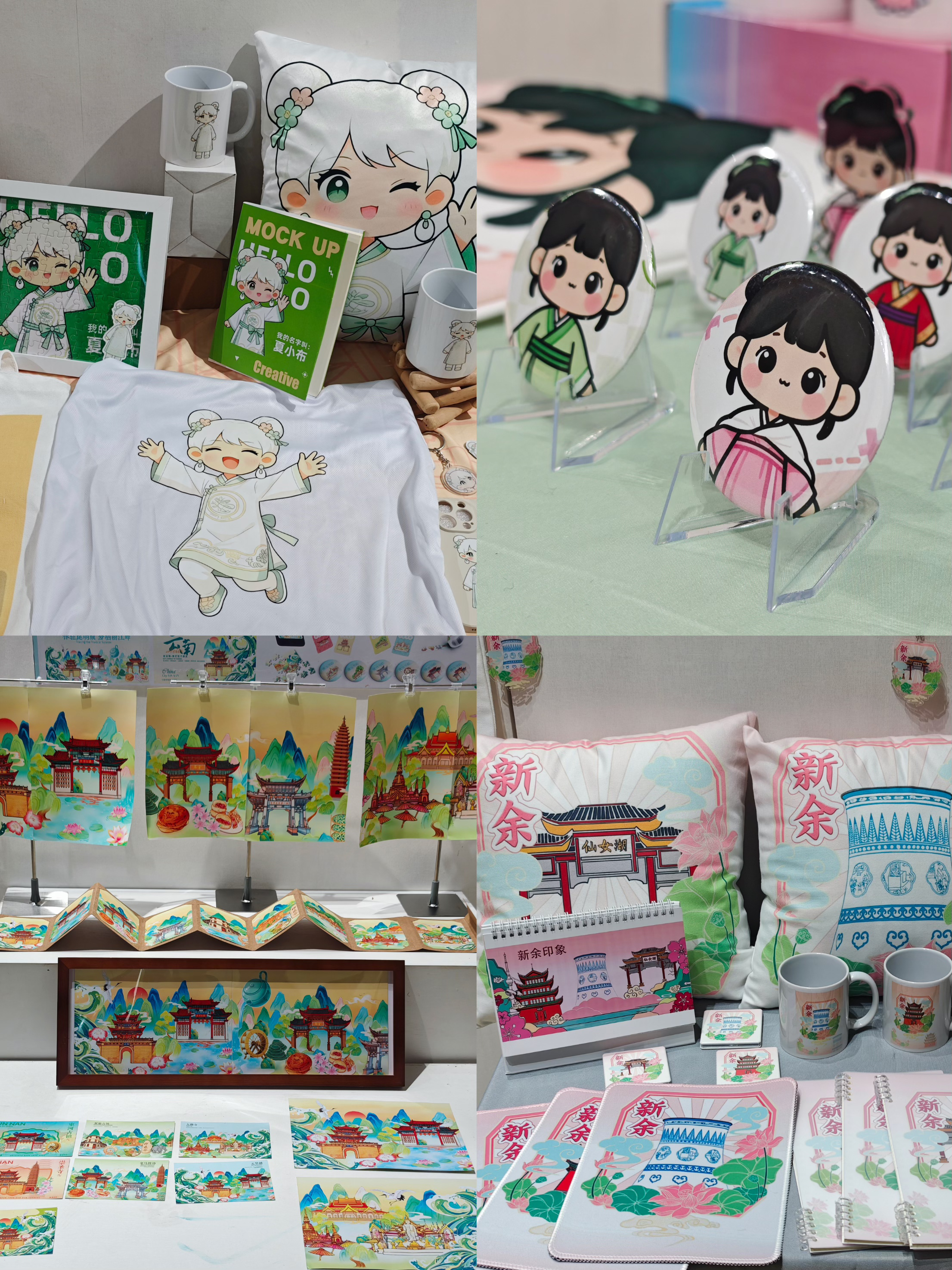 展厅内多组优秀作品涵盖了品牌形象设计、IP形象设计、文创设计、图形创意设计、插画创作、包装设计等多种形态,多角度诠释了“序间共生”的深刻内涵。在云南考察单元将经纬交错的白族扎染、神秘构形的东巴文的、绚丽多彩的傣锦等古老的视觉基因注入现代设计语系。新余考察单元的作品则更侧重于地域品牌的视觉构建,将仙女湖、夏布、剪纸等非遗技艺转化为一套可触可感的导视符号与图形语言,实现了传统手工艺的当代视觉转译,充分展现了同学们对地方文化资源的深度理解与创新应用能力。