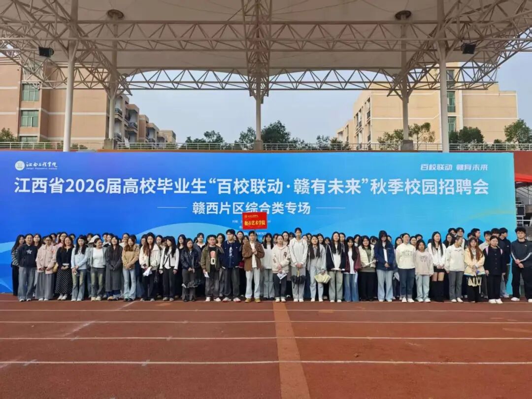 2025年11月7日,抱石艺术学院组织全体毕业生参加江西省2026届高校毕业生“百校联动·赣有未来”秋季校园招聘会赣西片区综合类专场暨江西工程学院2026届毕业生秋季大型招聘会,在江西工程学院天工校区“追梦”运动场圆满举行。160余家优质企业携9000余个优质岗位组团“赴约”,3000余名赣西片区高校毕业生以青春之姿奔赴求职现场,现场涌动着产业与人才双向奔赴的澎湃活力。