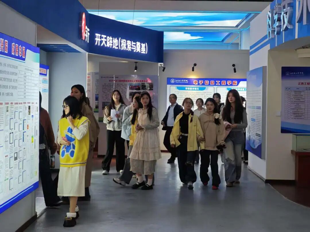 本次活动路线设计巧妙,内涵丰富。同学们从仙女湖校区的智慧产业学院校企合作基地出发,依次参观了前沿的工业4.0中心、华为ICT实验室,随后前往立德园,在校史馆中追寻学校发展的光辉足迹,在智能制造产业学院感受产教融合的蓬勃活力。队伍继而参观了展现学生创新实践风采的第二课堂展厅,以及在电子实训中心和教学成果展厅中,近距离领略了学校在实践教学与科研创新方面取得的丰硕成果。每一处都让同学们对学校的办学理念和人才培养模式有了更直观、更深刻的认识。