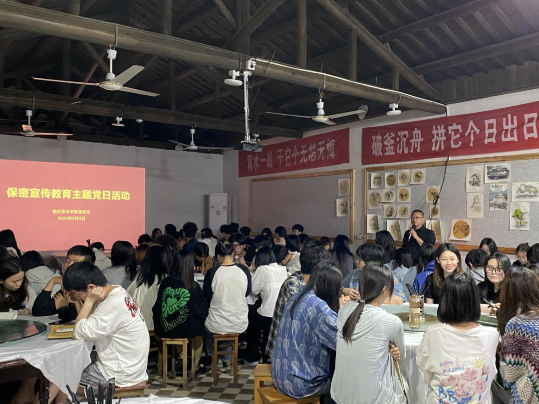 为贯彻落实党中央关于保密工作的决策部署和习近平总书记重要指示批示精神,聚焦新时代保密工作职责使命,全面筑牢保密防线,提升高校师生做好新时代保密工作的责任感和使命感。2023年5月6日晚,抱石艺术学院在宏村写生基地开展“保密宣传教育”主题党日活动,旨在进一步增强全体师生的保密意识和能力,深化保障机构安全。活动由党总支书记张志胜主持,基地全体师生参加了此次会议。