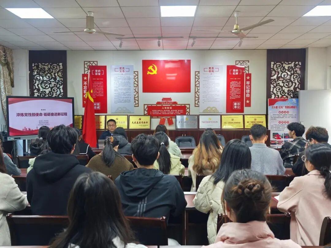 为深入学习贯彻党的创新理论,扎实推进党员教育培训工作,夯实学生党建根基,2025年11月28日,学院党总支书记刘永东在艺术楼202党员活动室,以《淬炼党性担使命,砥砺奋进新征程》为题,为学院全体学生党员、部分入党积极分子及入党申请人讲授了一堂专题党课。此次党课也标志着学院精心打造的“北斗星·红光”党建品牌下属特色栏目——【红光讲堂】正式启动并成功举办第一讲。