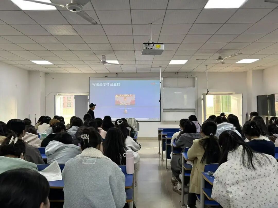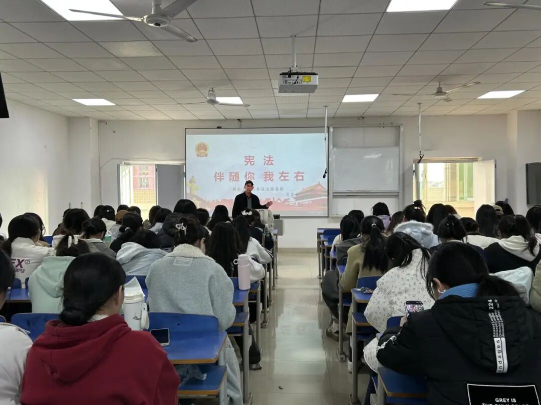 为进一步提升学生法治素养,引导青年学子树立正确法治观念,助力营造尊法学法守法用法的校园氛围,2025年11月28日下午4时,抱石艺术学院在艺术楼401教室举办“提升法治意识 促进良法善治”主题报告会。本次报告会特别邀请新余市关工委法治报告团团长肖显副担任主讲人,学院部分学生代表现场参会聆听,活动最后还举行了庄严的宪法宣誓仪式。