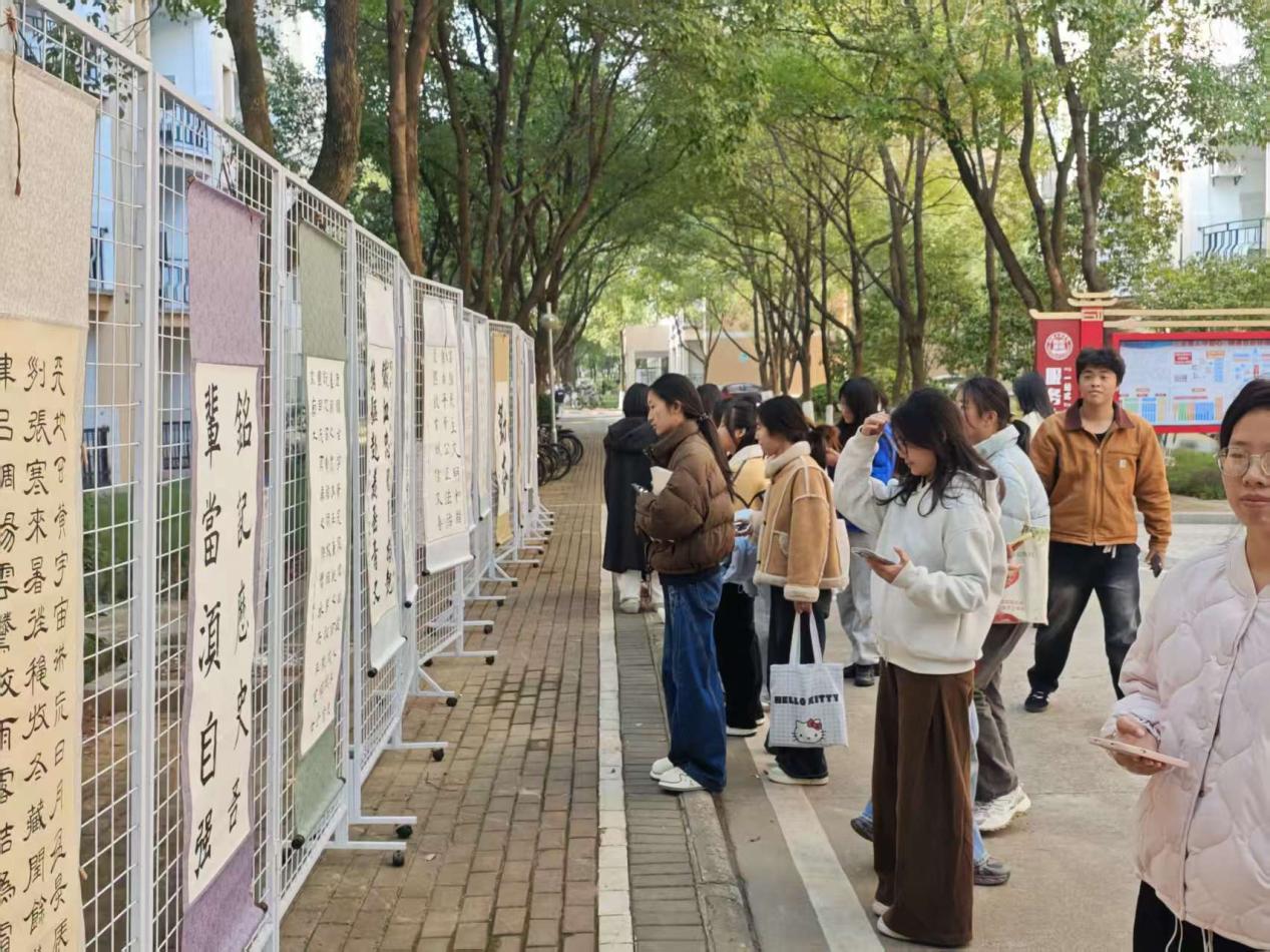 2025年12月4日上午10时,江西工程学院抱石艺术学院在学校9栋学生宿舍“红光社区”举办了学生书画作品展。本次活动是学院党总支“北斗星·红光”党建品牌系列活动之一,面向全校师生开放,旨在通过艺术展览的形式,展现新时代青年学子的审美追求与创新精神,推动党建与美育深度融合,营造积极向上的校园文化氛围。