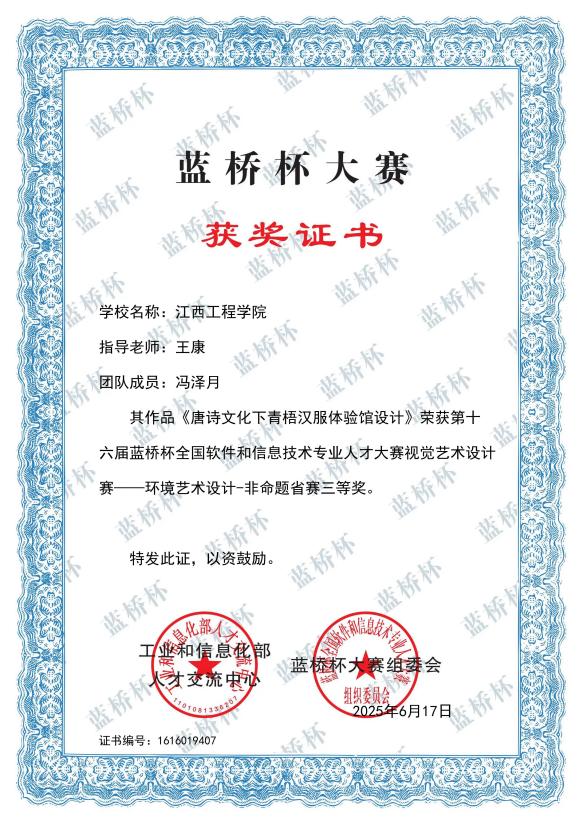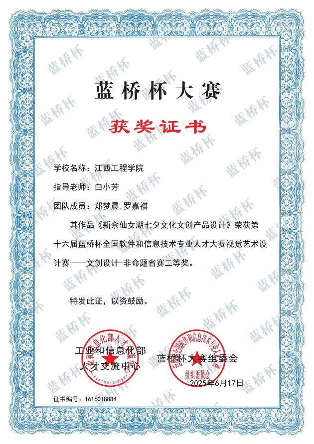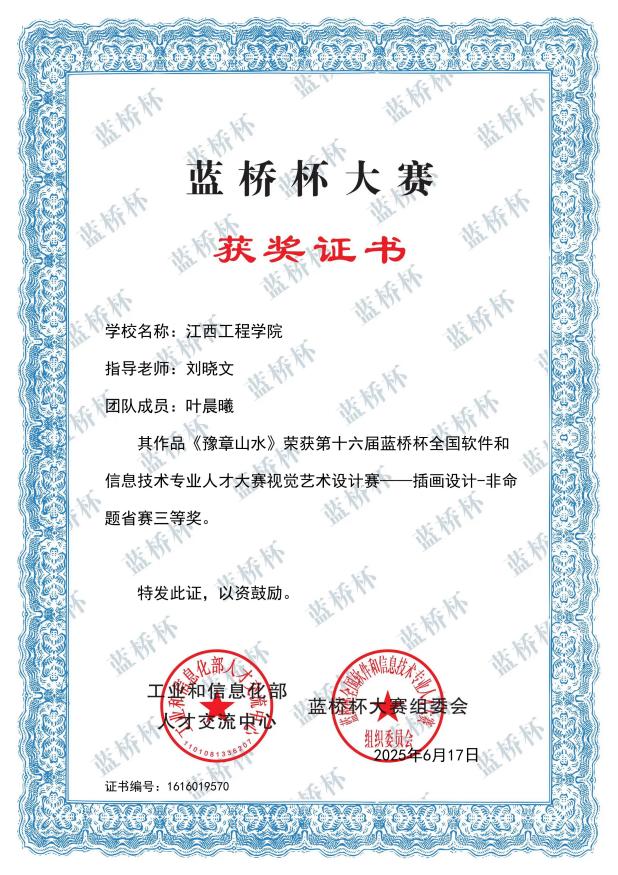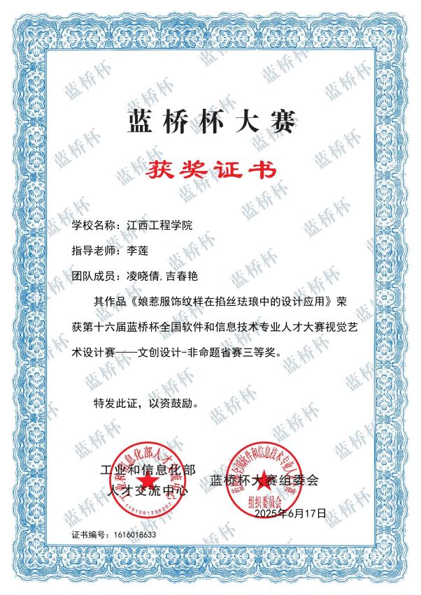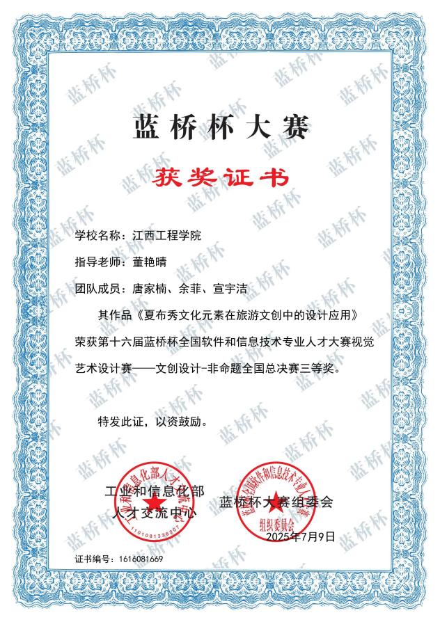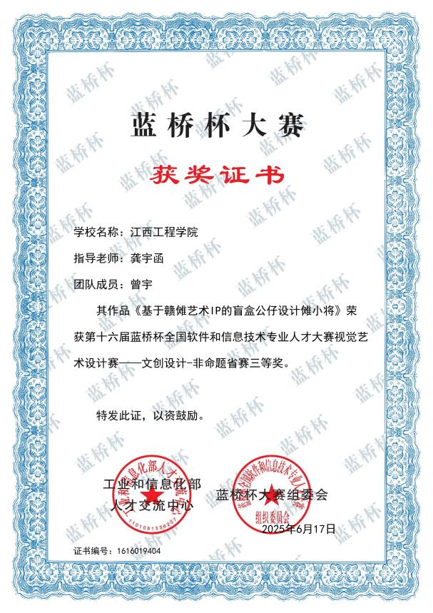 我院在十六届蓝桥杯设计大赛中获得国家级三等奖2项,省级一等奖2项,省级二等奖5项,省级三等奖9项,优秀奖2项。