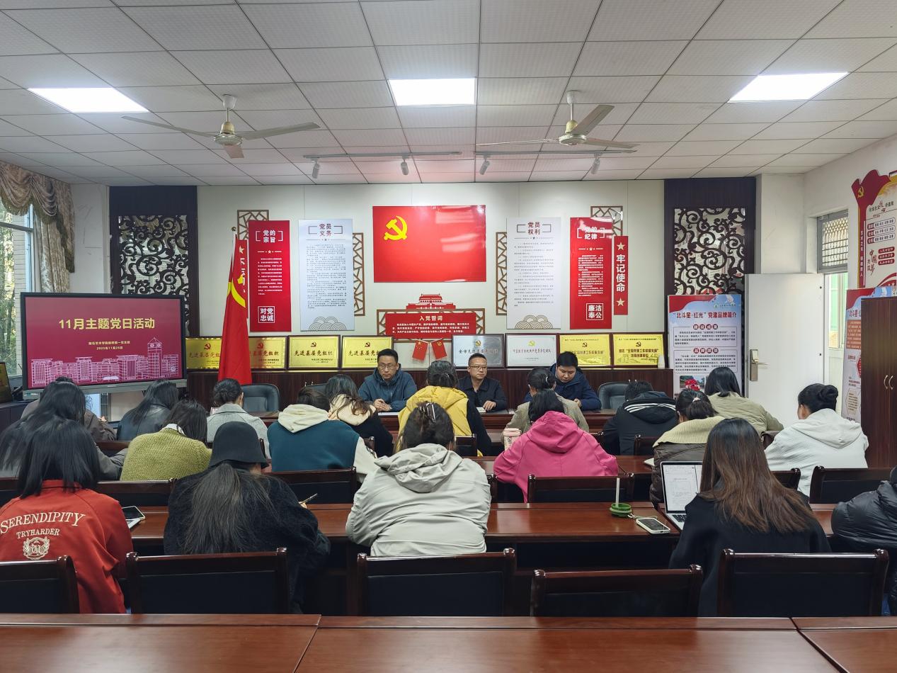 2025年11月26日14:00,抱石艺术学院教师第一党支部在艺术楼202会议室组织召开11月份主题党日活动。会议由抱石艺术学院党总支书记刘永东同志主持,支部全体党员教师参会。