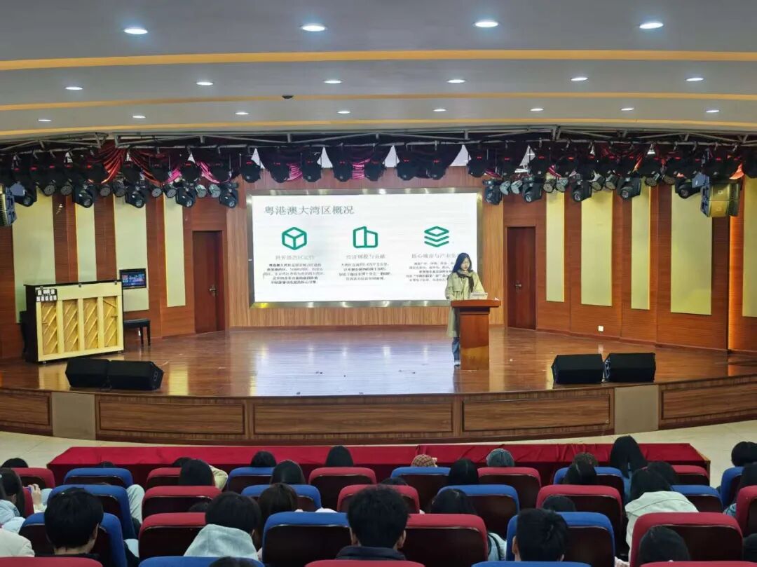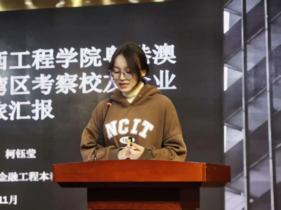 报告会分场地同时进行。学术报告厅一楼由郭晓娟、柯钰莹、邓盈盈三位同学担任主讲,四楼则由侯雅洁、柯钰莹、胡欣怡三位同学分享。她们作为近期赴粤港澳大湾区考察交流团的成员,结合自身在深圳、广州、珠海、香港等地的访学见闻,围绕艺术设计行业的创新趋势、校企合作模式、就业创业环境以及文化融合发展等内容展开宣讲,并分享了参与展览、工作坊、企业参访中的收获与思考。