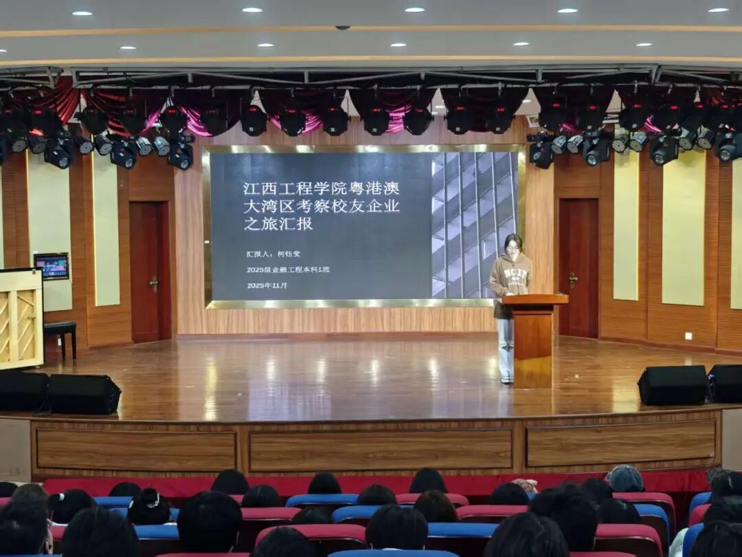 2025年12月4日晚7时,江西工程学院抱石艺术学院在学术报告厅一楼、四楼同步举办“2025年粤港澳大湾区学生考察团宣讲报告会”。本次活动面向全校学生,旨在通过考察团成员的亲身经历与生动分享,帮助新生开阔视野、了解前沿动态、明晰学业规划,增强对专业发展与未来机遇的认识。