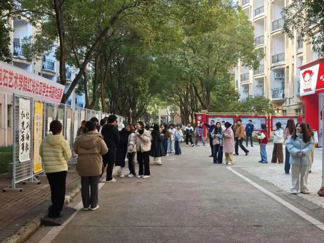 2025年12月4日上午10时,江西工程学院抱石艺术学院在学校9栋学生宿舍“红光社区”举办了学生书画作品展。本次活动是学院党总支“北斗星·红光”党建品牌系列活动之一,面向全校师生开放,旨在通过艺术展览的形式,展现新时代青年学子的审美追求与创新精神,推动党建与美育深度融合,营造积极向上的校园文化氛围。