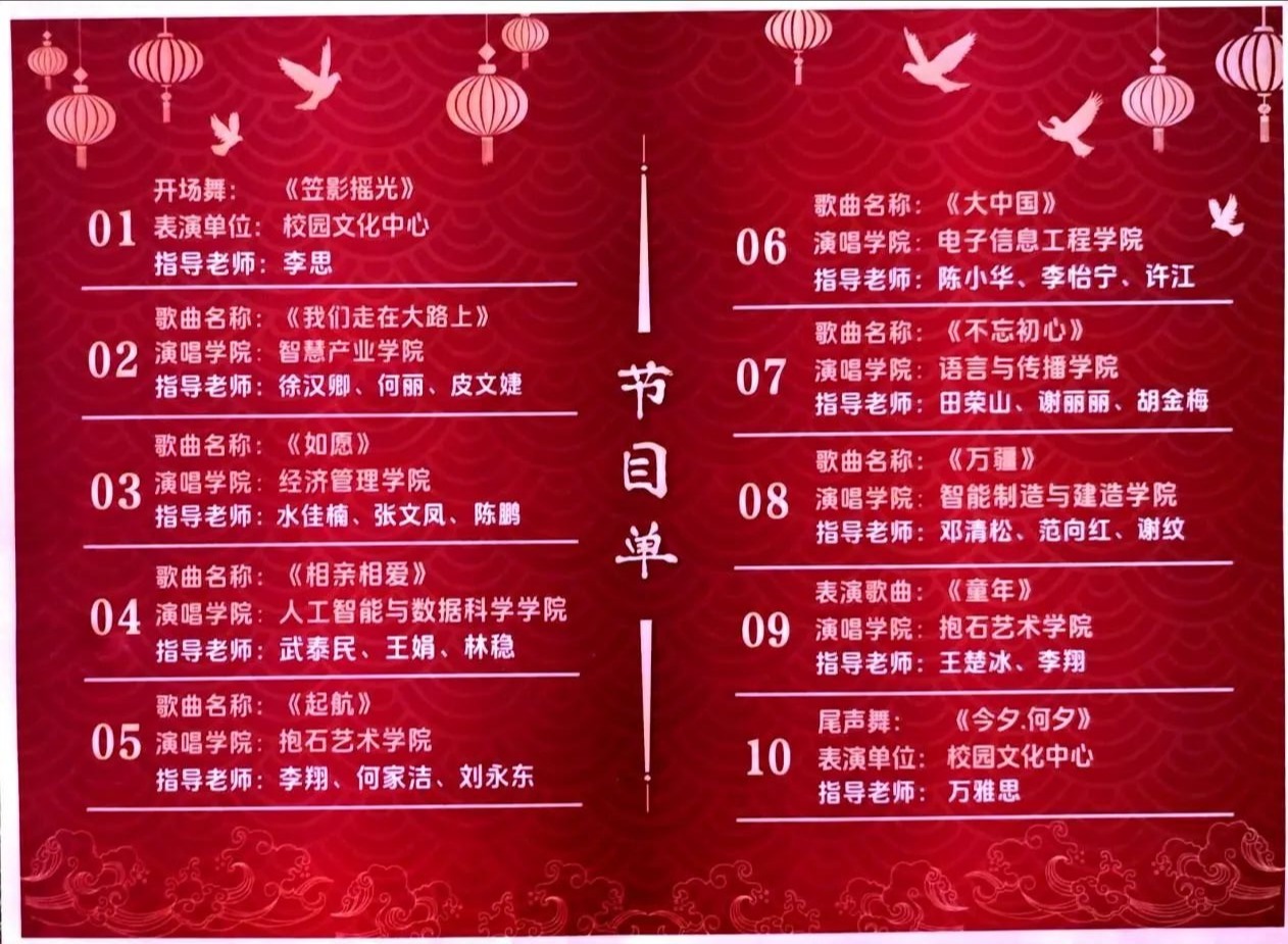 合唱环节中,抱石艺术学院代表队以两首风格迥异的作品展现了扎实的艺术功底。《起航》的旋律响起时,队员们精神抖擞、声线铿锵,歌声中饱含对梦想的执着追求与对民族复兴的坚定信念,仿佛将观众带入热血青年扬帆远航的壮阔场景,完美诠释了“启新程”的活动主旨。
