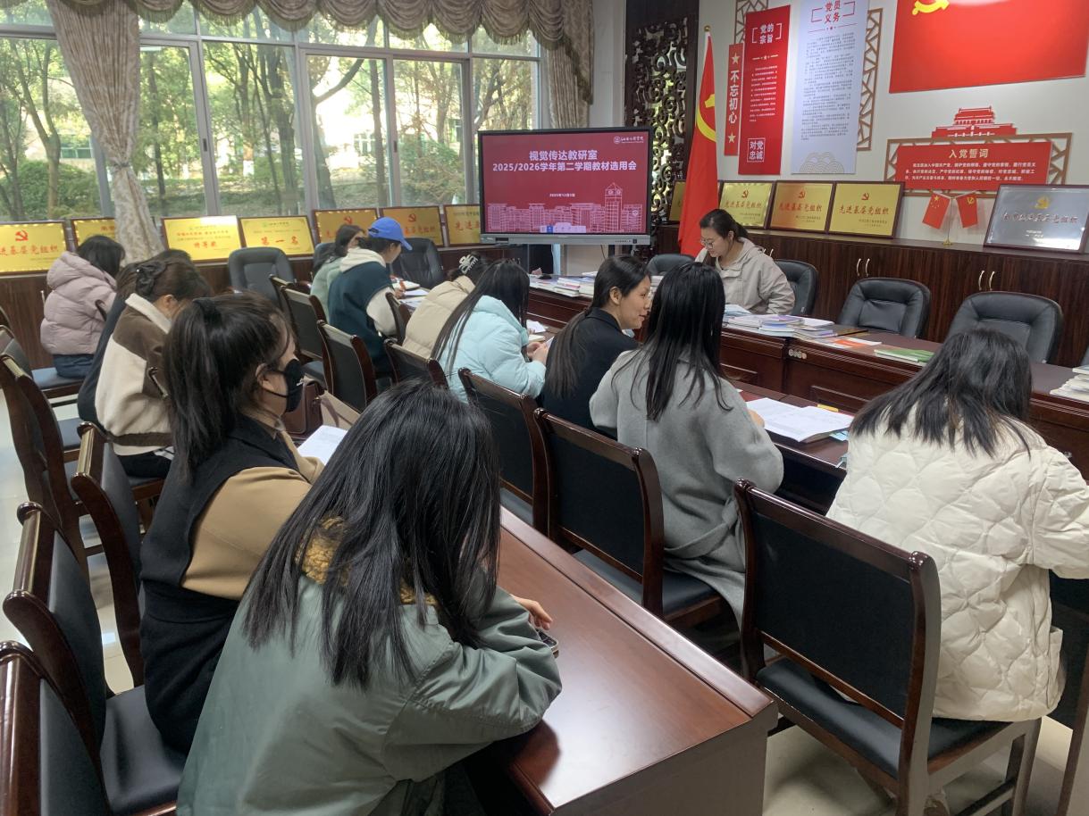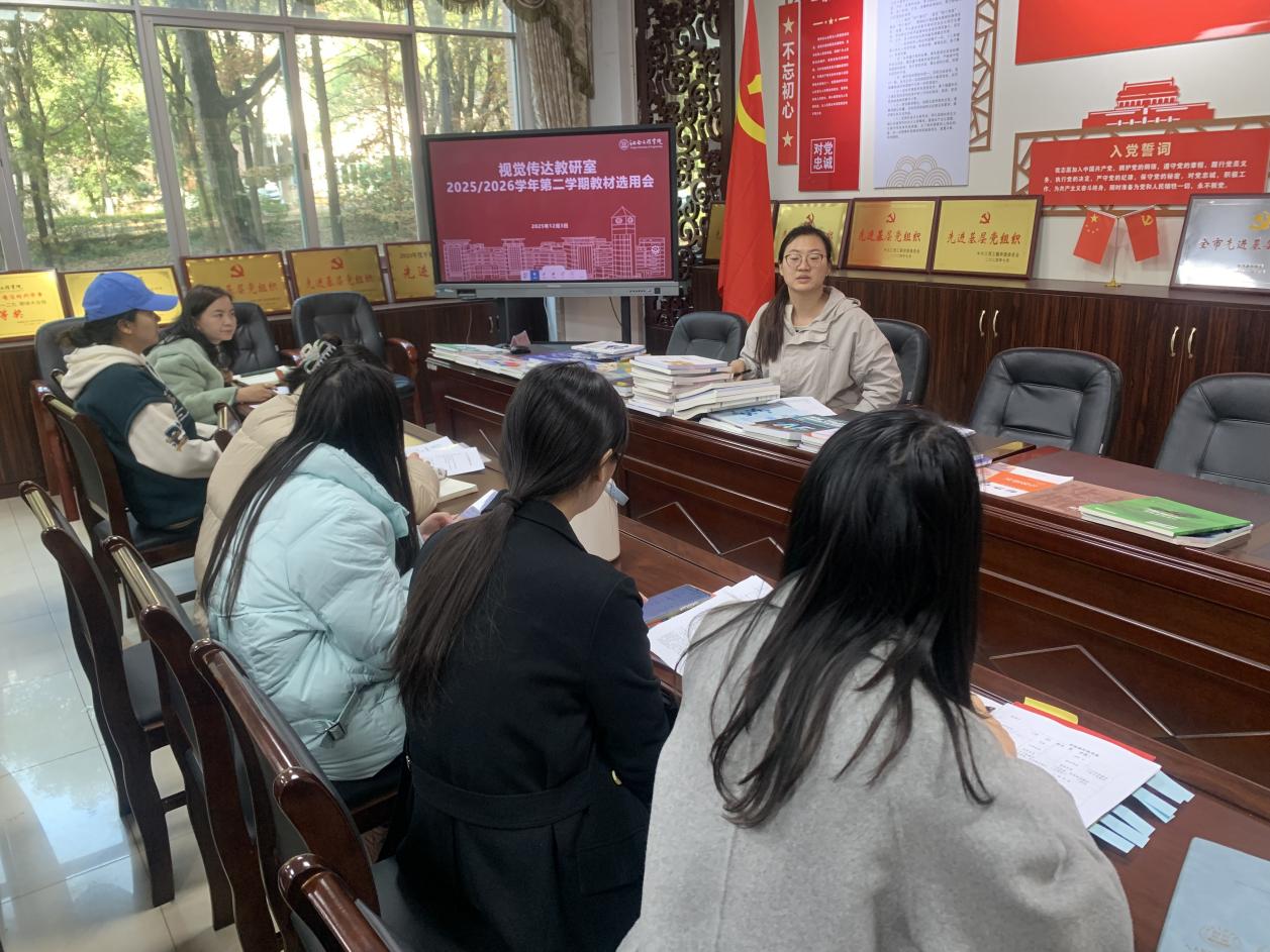 为规范教材选用,确保教材选用流程合规,信息完整,解决旧教材内容滞后、实践案例不足等问题,避免教材同质化或理论化过重,为新学期教学质量保障提供支撑,2025年12月3日下午两点,视觉传达设计教研室召开了视觉传达设计专业2025/2026学年第二学期教材选用会,会议由白小芳主任主持,教研室全体教师参会。