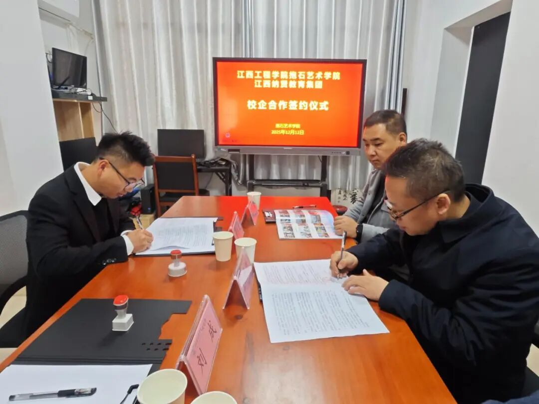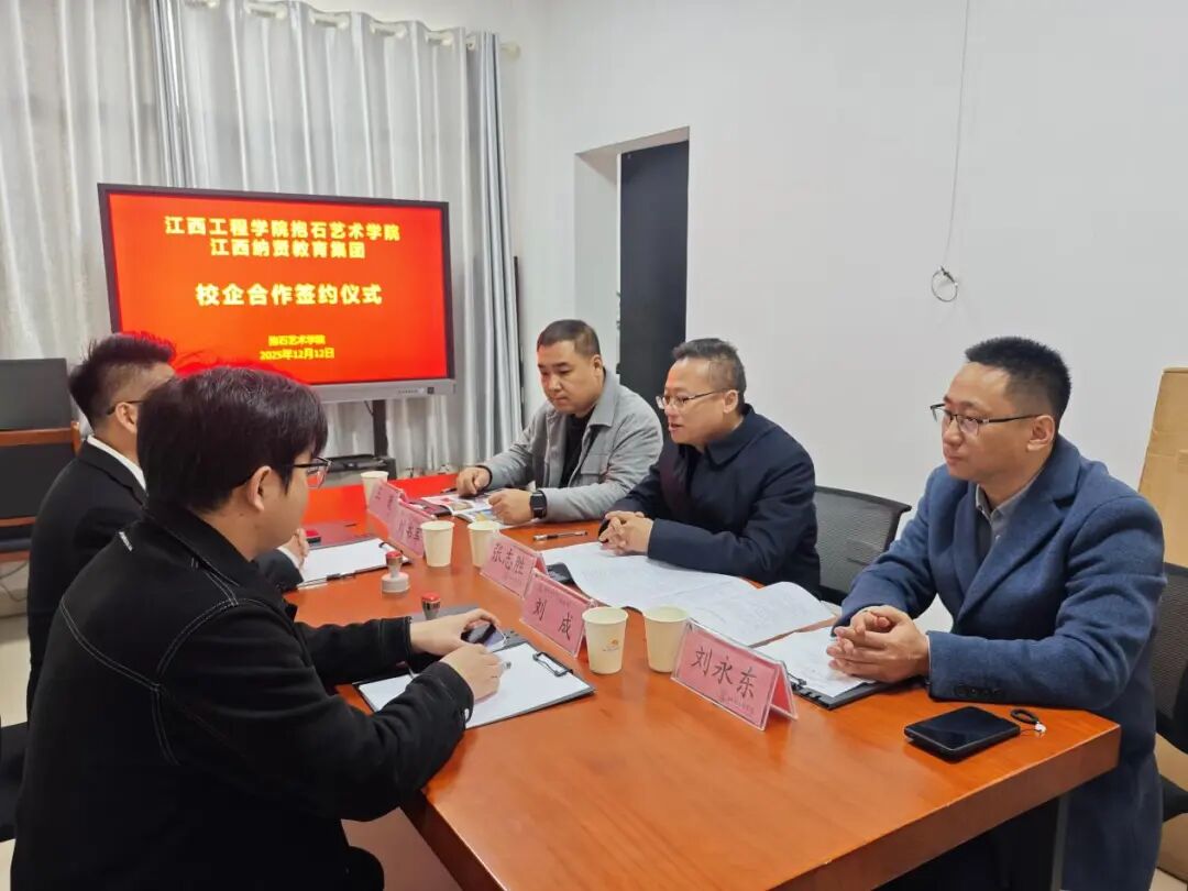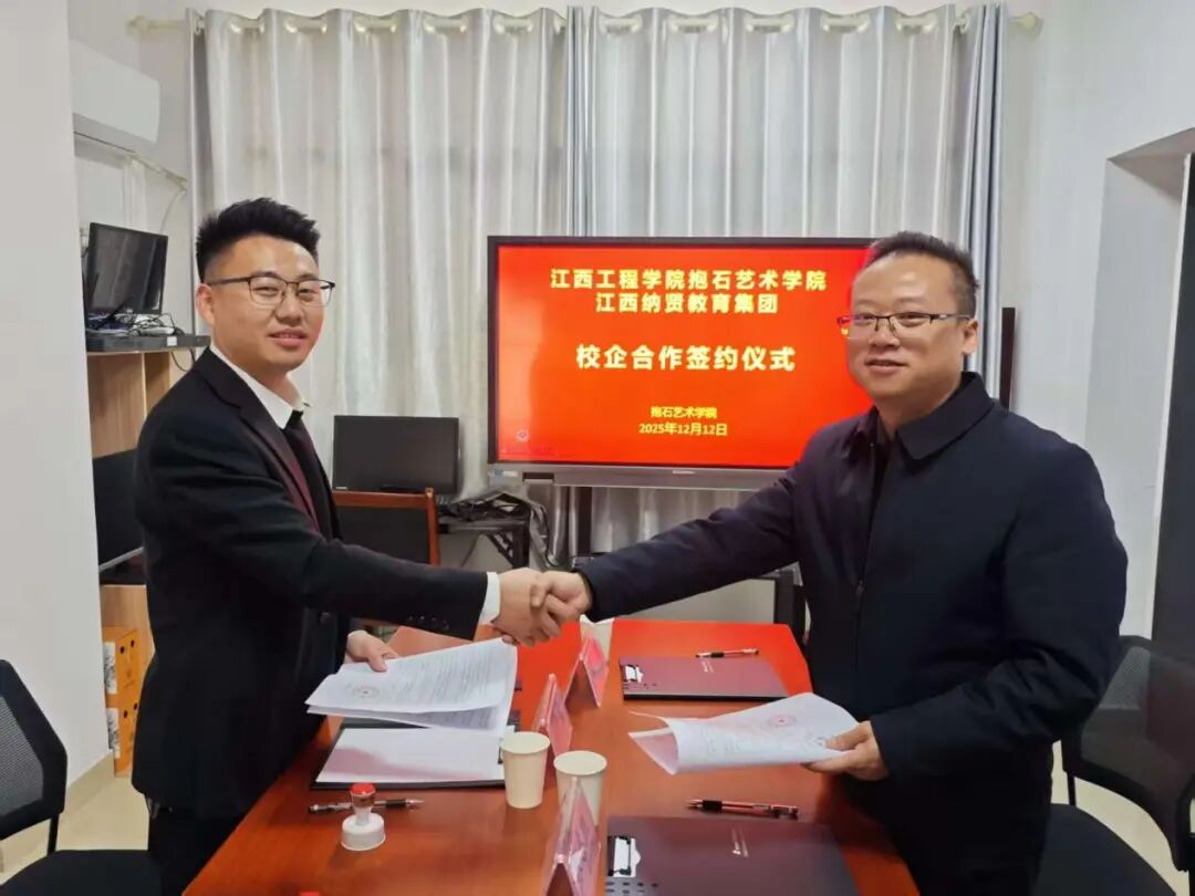 2025年12月12日上午11时,江西工程学院抱石艺术学院与江西纳贤教育集团校企合作签约仪式在学校艺术楼101会议室隆重举行。此举标志着双方在深化产教融合、协同育人方面迈出了坚实一步,旨在共同构建优势互补、资源共享的发展新平台。