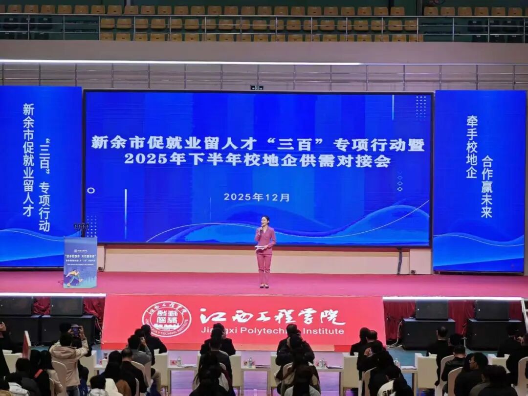 为深化校地企合作,全力促进2026届毕业生高质量就业,12月12日上午9:00-10:30,抱石艺术学院党总支书记刘永东、党总支副书记姬赛赛及全体辅导员带领学院2026届毕业生,赴江西工程学院体育馆参加新余市促就业留人才“三百”专项行动暨2025年下半年校地企供需对接会。
