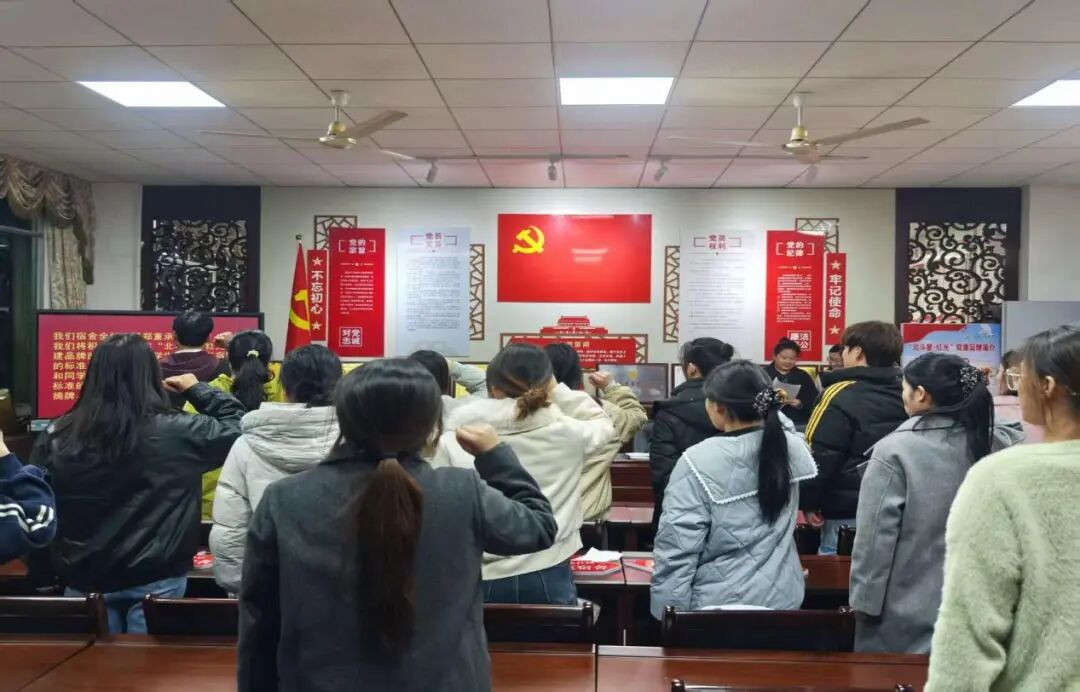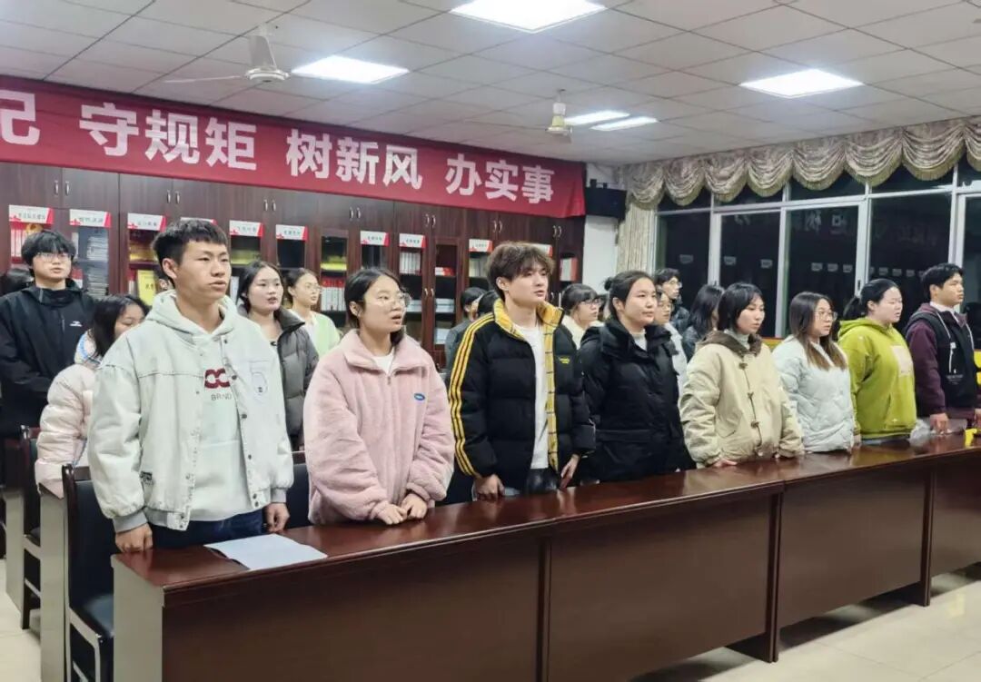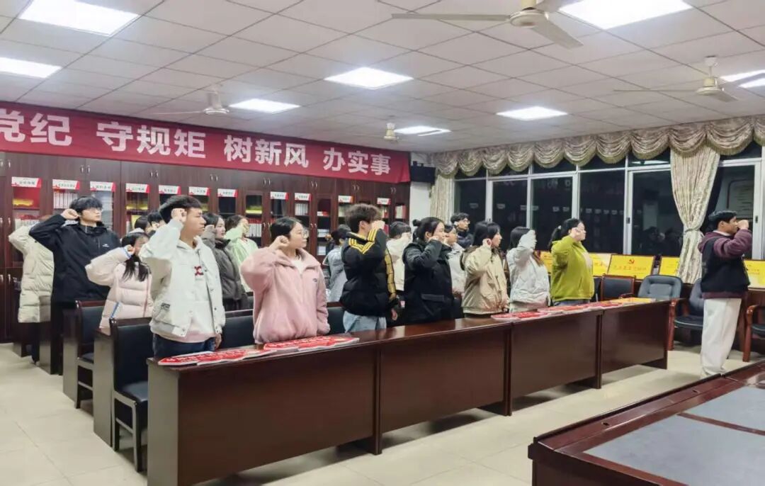 在庄严的氛围中,活动进入宣誓承诺环节。由优秀学生党员领誓,全体示范宿舍党员面对党旗,重温入党誓词,并集体宣读了《党员宿舍承诺书》,表达了严守纪律、服务同学、争当表率的坚定决心。
