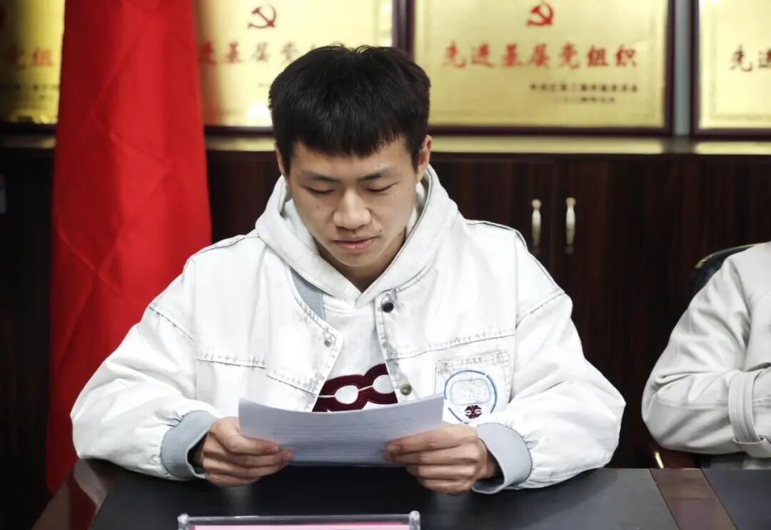 授牌结束后,学生党员代表郭东山发言。他结合自身经历,分享了参与宿舍创建的初心与体会,并承诺将切实发挥党员先锋模范作用,带动身边同学共同进步。