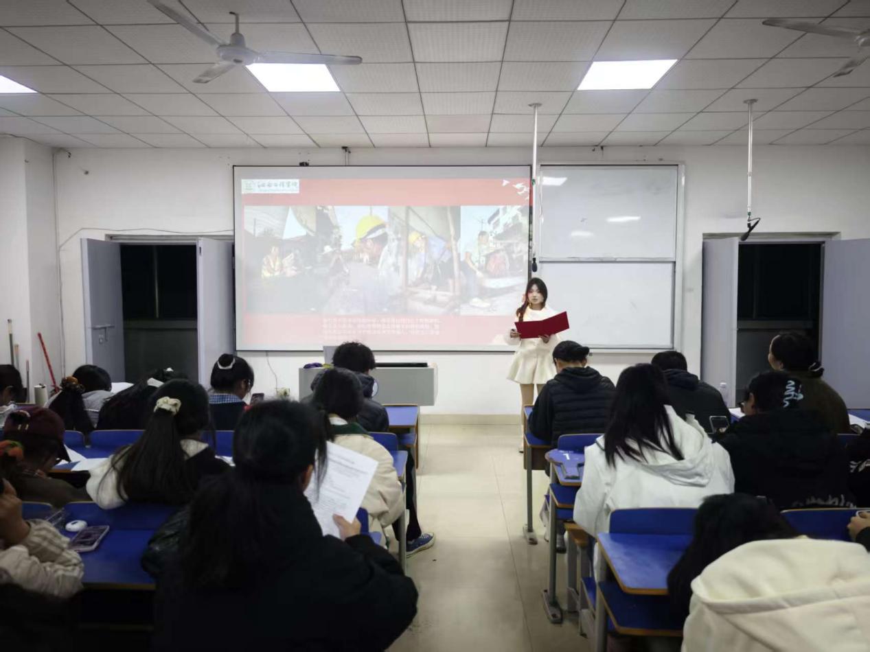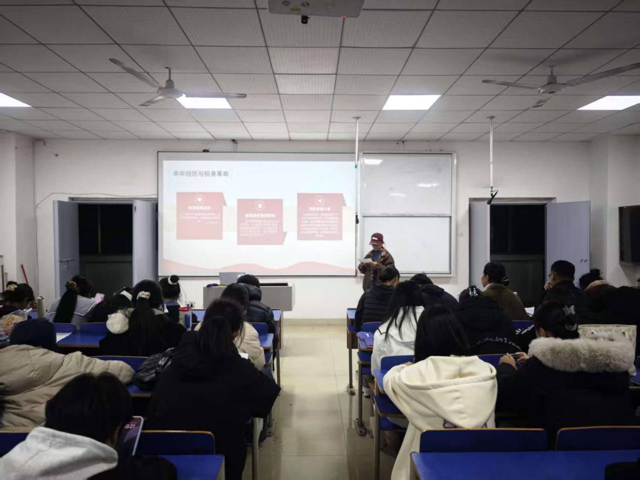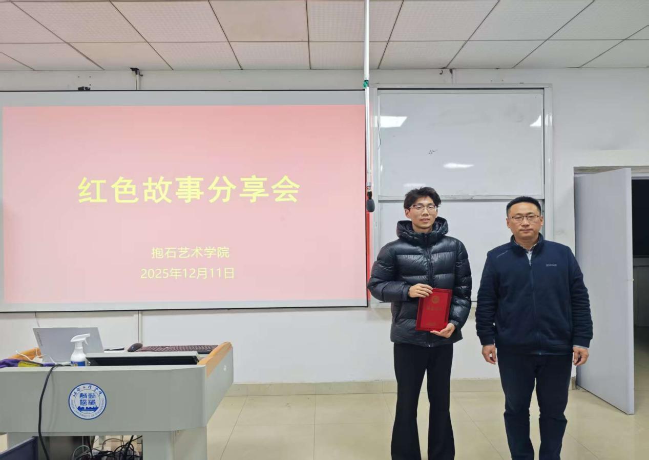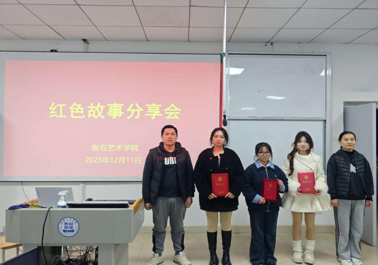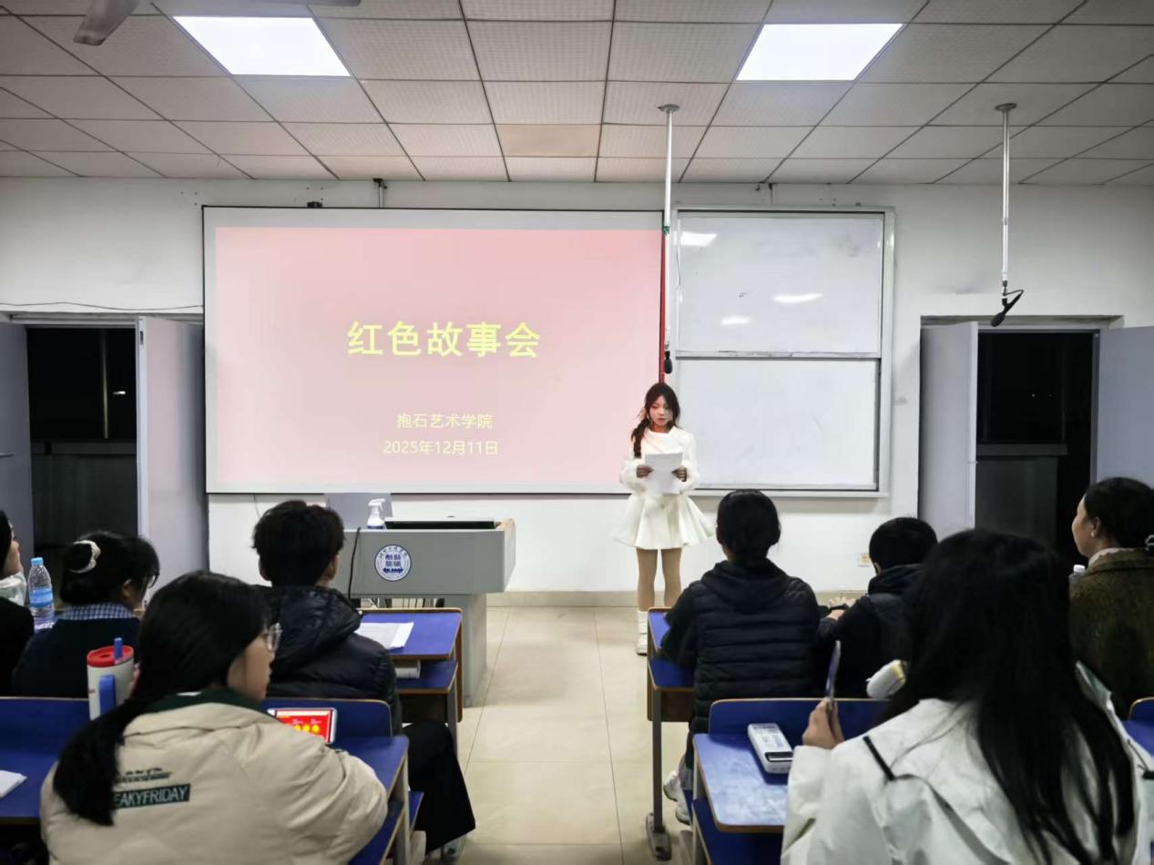 2025年12月13日晚上6:30,抱石艺术学院在艺术楼401教室举行“赓续红色血脉,争做薪火传人”红色故事分享会(院级赛)。学院党总支书记刘永东、党总支副书记姬赛赛、专职组织员叶丽、团总支书记答惠琳、全体辅导员与部分学院学生共同出席了本次活动。
