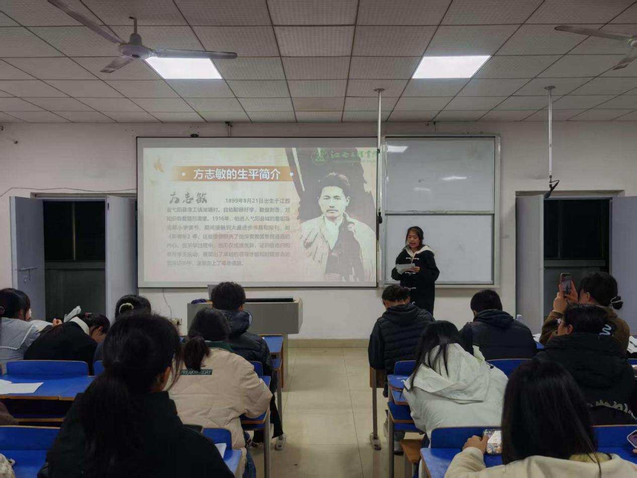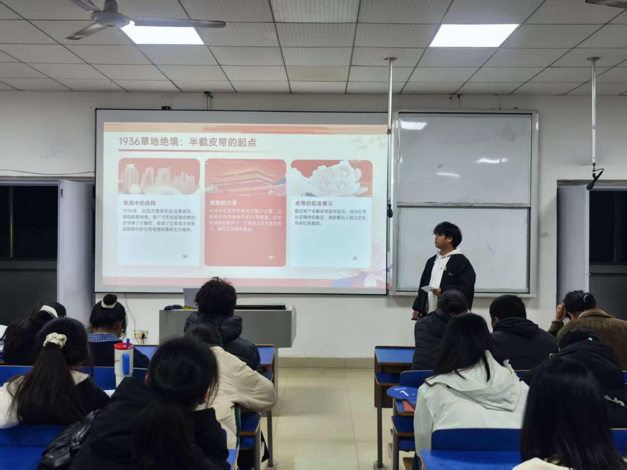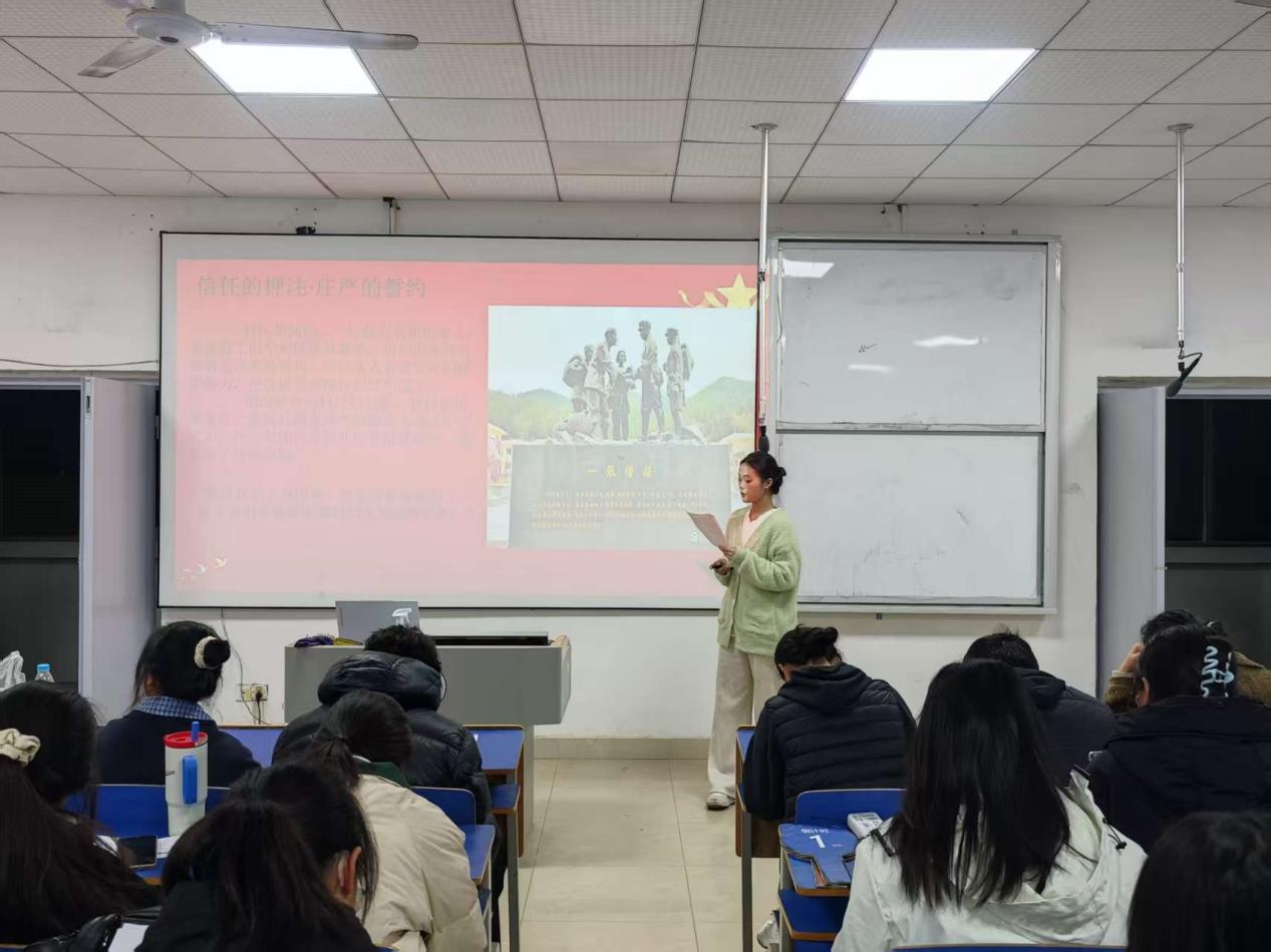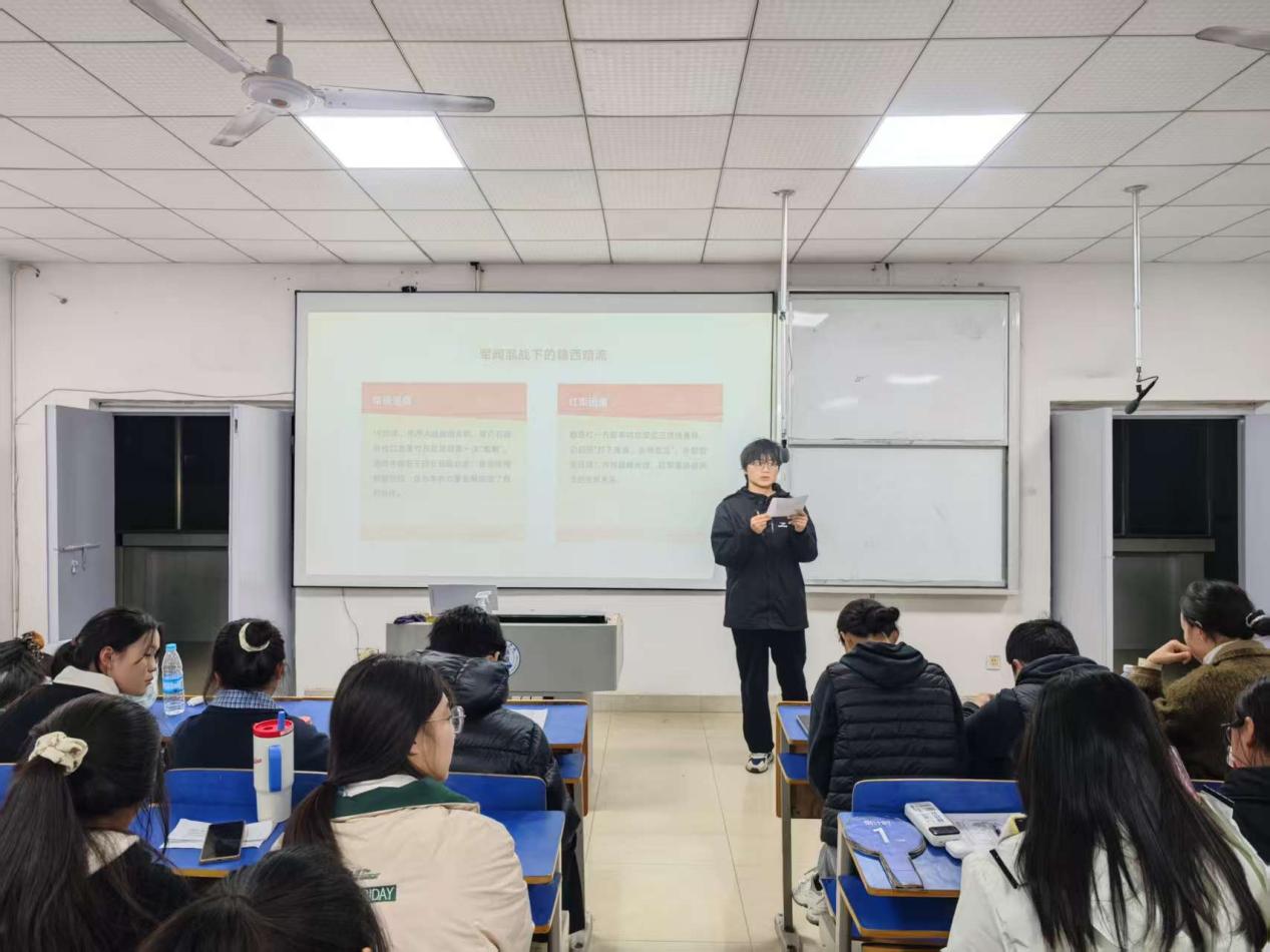 2025年12月13日晚上6:30,抱石艺术学院在艺术楼401教室举行“赓续红色血脉,争做薪火传人”红色故事分享会(院级赛)。学院党总支书记刘永东、党总支副书记姬赛赛、专职组织员叶丽、团总支书记答惠琳、全体辅导员与部分学院学生共同出席了本次活动。