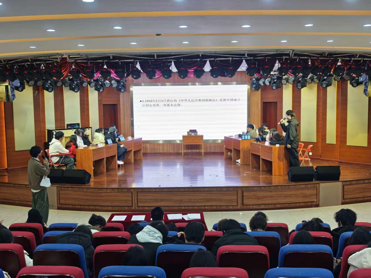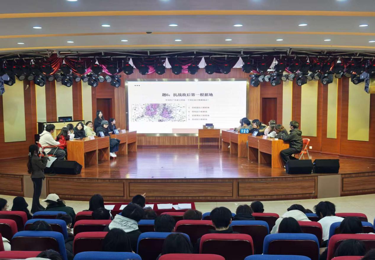 为深化党史学习教育,引导青年学子坚定理想信念,2025年12月16日晚7时,抱石艺术学院在文科楼4楼演艺厅成功举办“追寻北斗之光·点亮信仰星空”党史知识竞赛。学院党总支书记刘永东、部分教师代表,以及全体入党申请人、入党积极分子齐聚一堂,共同参与了这场别开生面的理论学习与思想交流活动。