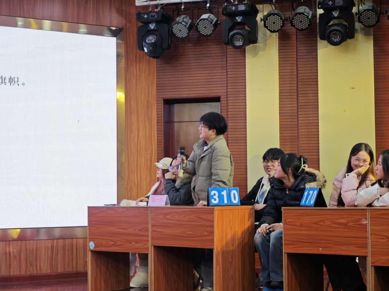 比赛现场气氛紧张热烈,各队选手精神饱满、应答敏捷,展现了抱石艺术学院学子扎实的理论功底和积极向上的精神风貌。在抢答环节,队员们默契配合、踊跃争先;在风险题环节,各队权衡策略、沉着应对,将现场氛围推向高潮。观众席上掌声阵阵,互动环节师生积极参与,体现了学院浓厚的理论学习氛围。