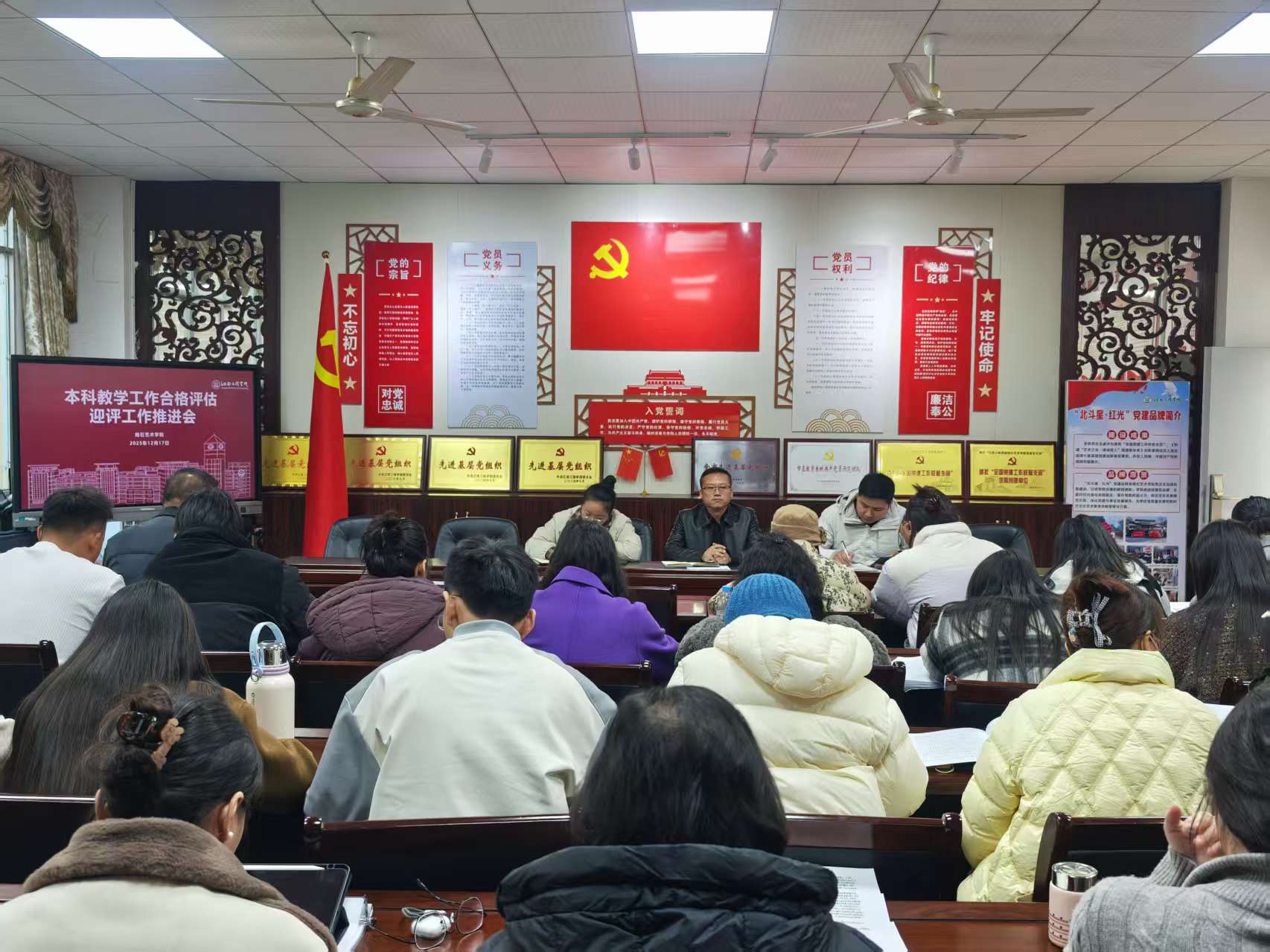 为全面推进本科教学工作合格评估各项准备工作,凝聚共识、明确任务、压实责任,确保迎评工作高效有序进行,抱石艺术学院于2025年12月17日下午2:30在艺术楼202会议室召开迎评工作推进会。学院院长张志胜、副院长王冬冬、罗文艳及全体教师出席会议。会议由副院长王冬冬主持。