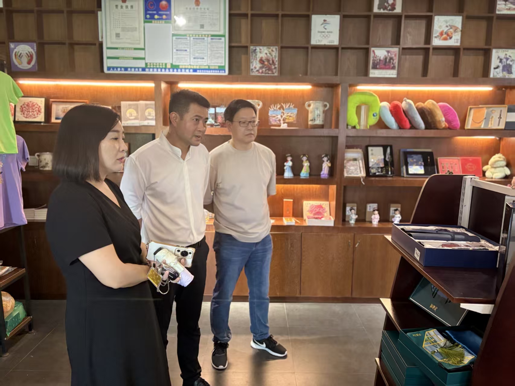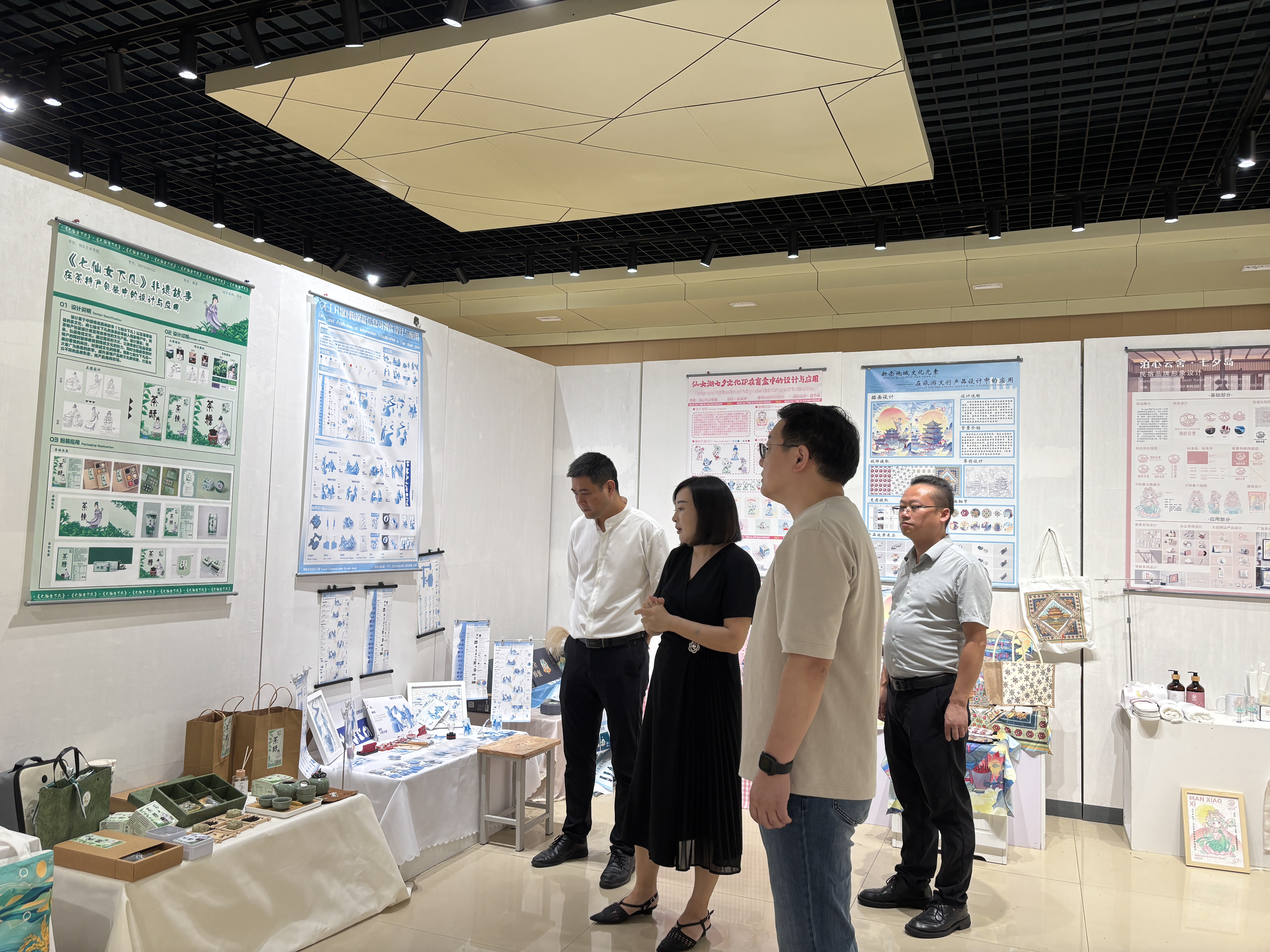 本次调研活动为期一天,调研团队先后走访了抱石艺术学院产业学院成果展厅、仙女湖景区文创空间,深入了解学院在文创产品研发、文艺作品创编、特色活动策划等方面的产教融合成果。双方围绕“非遗+文旅”融合发展路径、“政校企”协同育人机制以及“赛事+项目”成果输出模式展开深入交流。