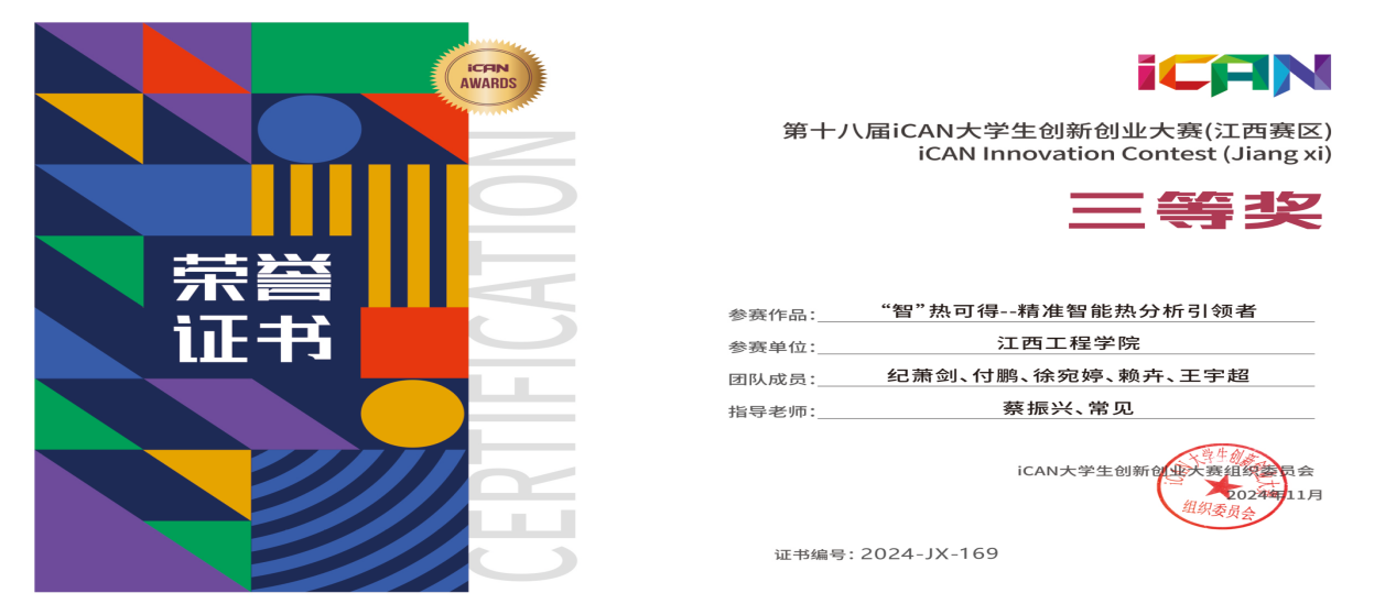 9.2024年获江西省第十八届ICAN大学生创新创业大赛三等奖