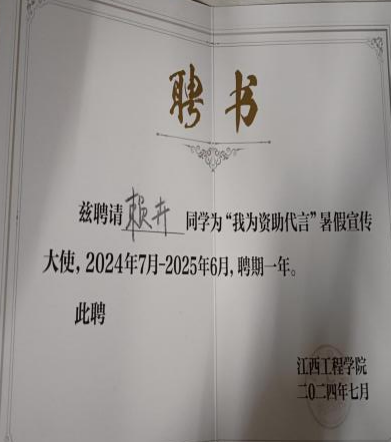 16.2024年获校级“暑假资助宣传大使”聘书