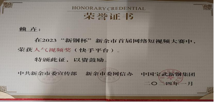 11.2024年“新钢杯”新余首届短视频大赛人气奖