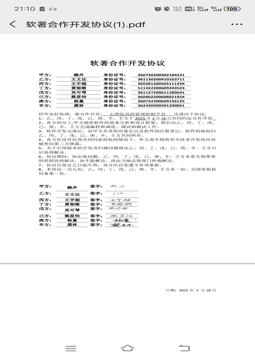 5.2025年主导开发《心理玩具的管理控制平台》软著(在申)