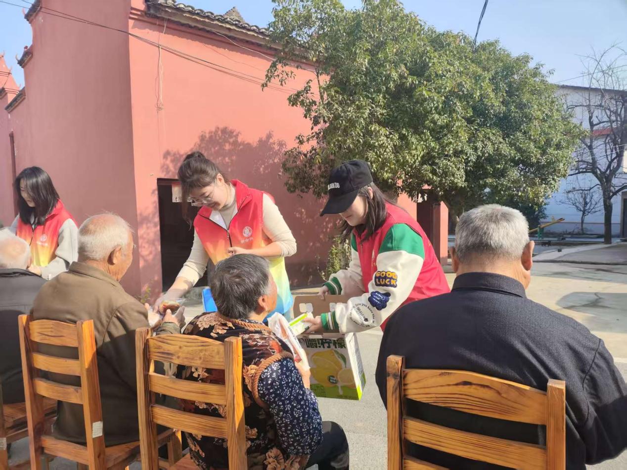 此外,志愿者们还为老人们送上了精心准备的面包、牛奶等慰问物资。当老人们接过沉甸甸的物资时,脸上露出了感动的笑容,不住地向志愿者们表达感谢。孩子们太贴心了,不仅陪我们聊天、给我们拍照,还送来了吃的,心里真暖和!一位老人握着志愿者的手激动地说道。