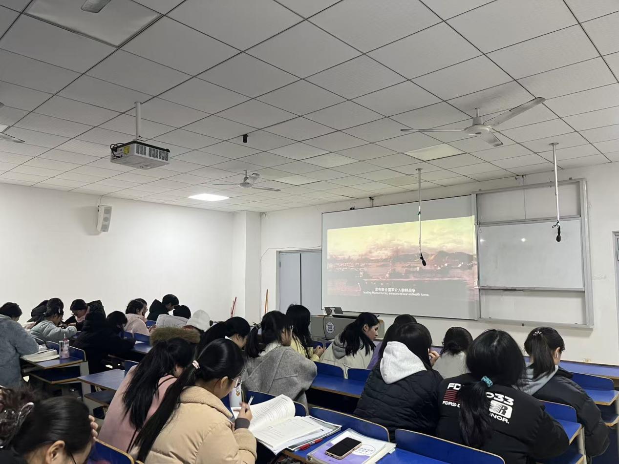 为弘扬爱国主义精神,厚植家国情怀,丰富校园文化生活,抱石艺术学院于2025年12月22日晚7时,在艺术楼401教室成功举办了“映见初心,逐光前行”主题观影活动。学院2025级全体学生齐聚一堂,共同观看了爱国主义题材电影《长津湖》。