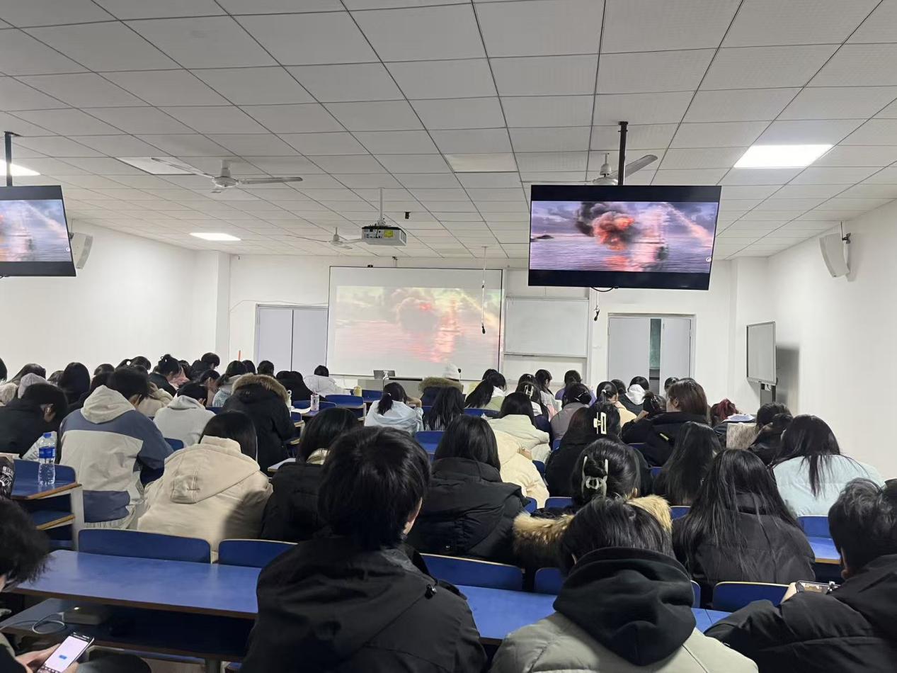 活动伊始,现场座无虚席,同学们怀着庄重而期待的心情等待影片开始。本次观影活动是学院开展思想政治教育与艺术专业教育相结合的重要实践环节之一,旨在通过光影艺术,引导青年学生铭记历史、致敬英雄,从中汲取奋进力量,坚定艺术为民、创作报国的初心使命。
