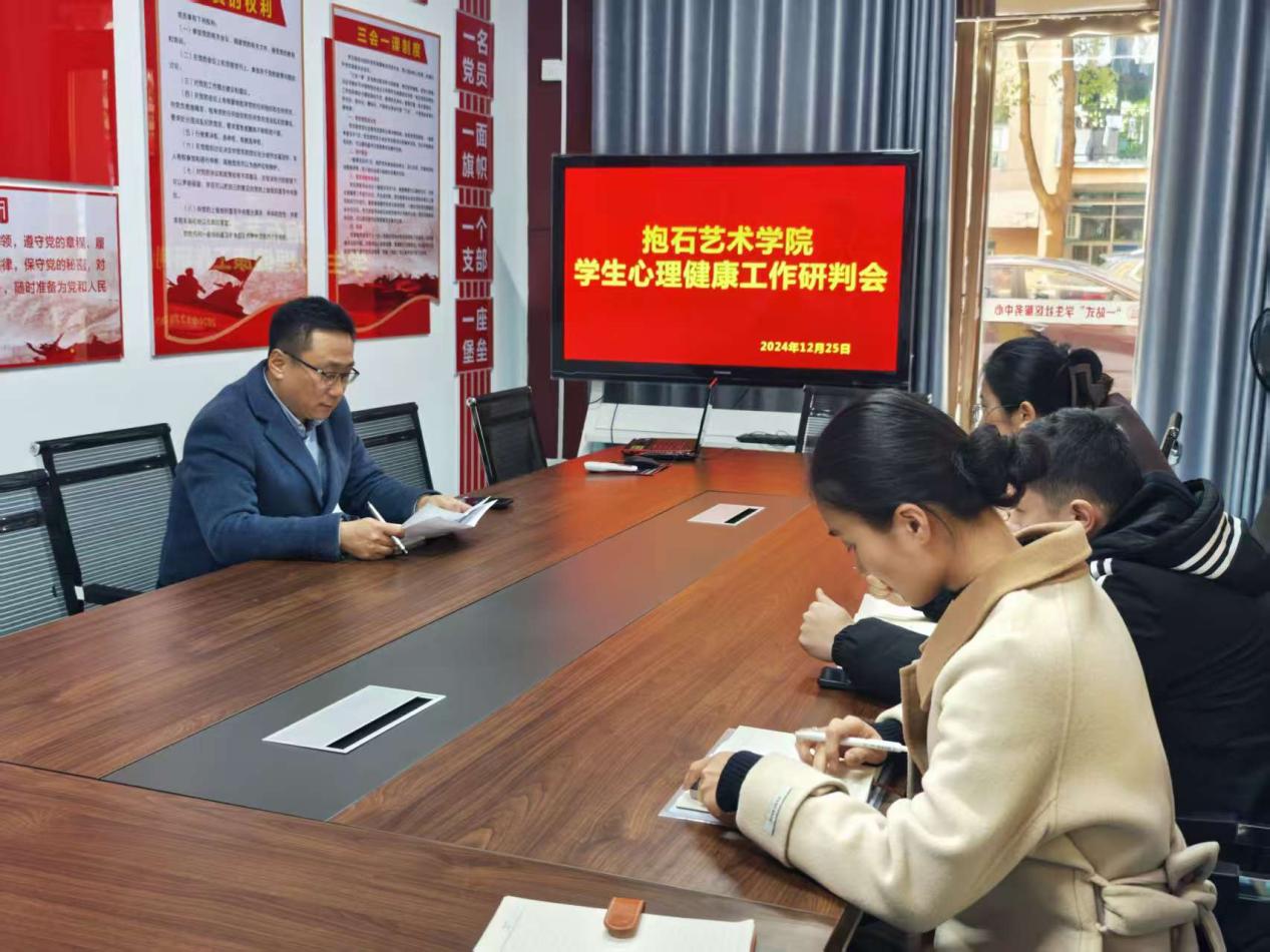 为深入贯彻立德树人根本任务,进一步提升心理育人工作的针对性与实效性,12月25日下午4时,抱石艺术学院在9栋一站式党员活动室组织召开学生心理健康工作专题研判会。学院党总支书记刘永东出席会议,全体专职辅导员参加会议。