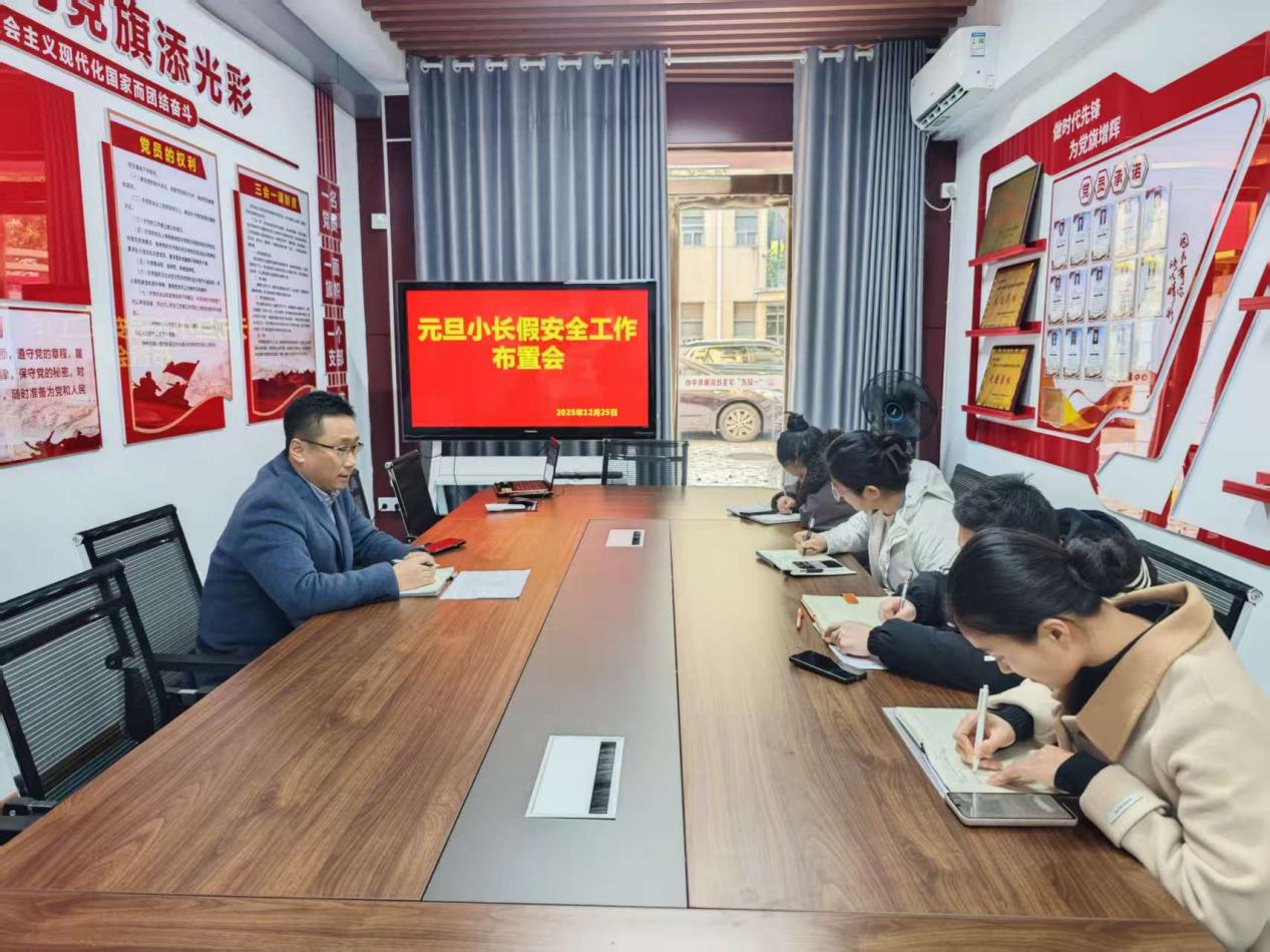 为切实做好元旦期间校园安全稳定工作,确保全体师生度过一个平安、祥和的假期,2025年12月25日下午3时,抱石艺术学院在9栋一站式党员会议室组织召开元旦假期安全工作布置会。学院党总支书记刘永东出席会议并作工作部署,全体辅导员参加会议。