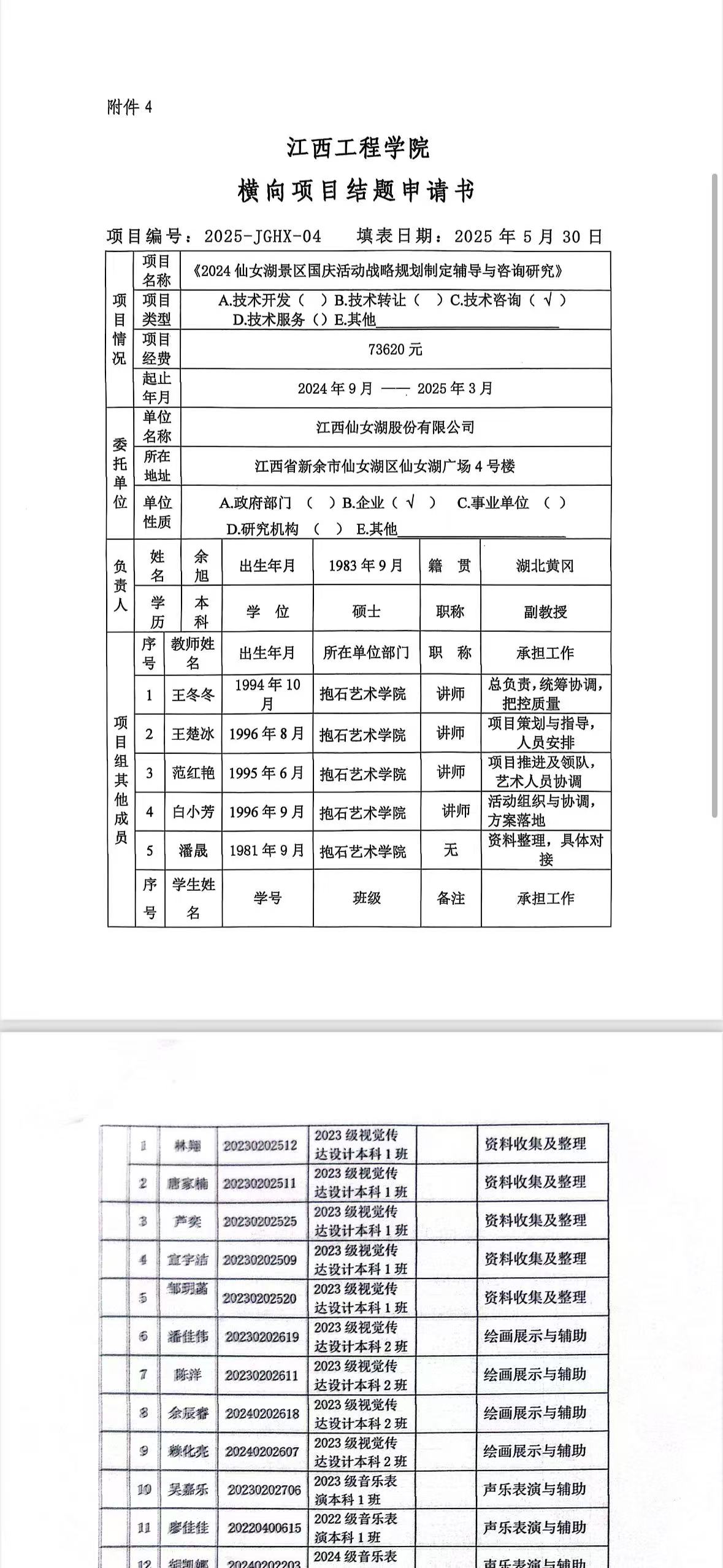 12.参与校级横向课题《2024“浪漫金秋季相约仙女湖”活动》结项