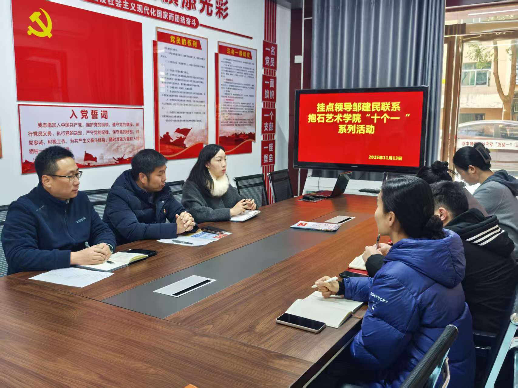 2025年11月13日,挂点我院的校党委委员、校长助理邹建民来到抱石艺术学院,深入开展“十个一”联系学院系列活动。校领导先后与学院党总支书记刘永东、思政课教师代表、高层次人才、学生党支部成员进行了座谈交流,并深入学生宿舍走访看望,听取师生心声,指导学院工作,提出明确要求。
